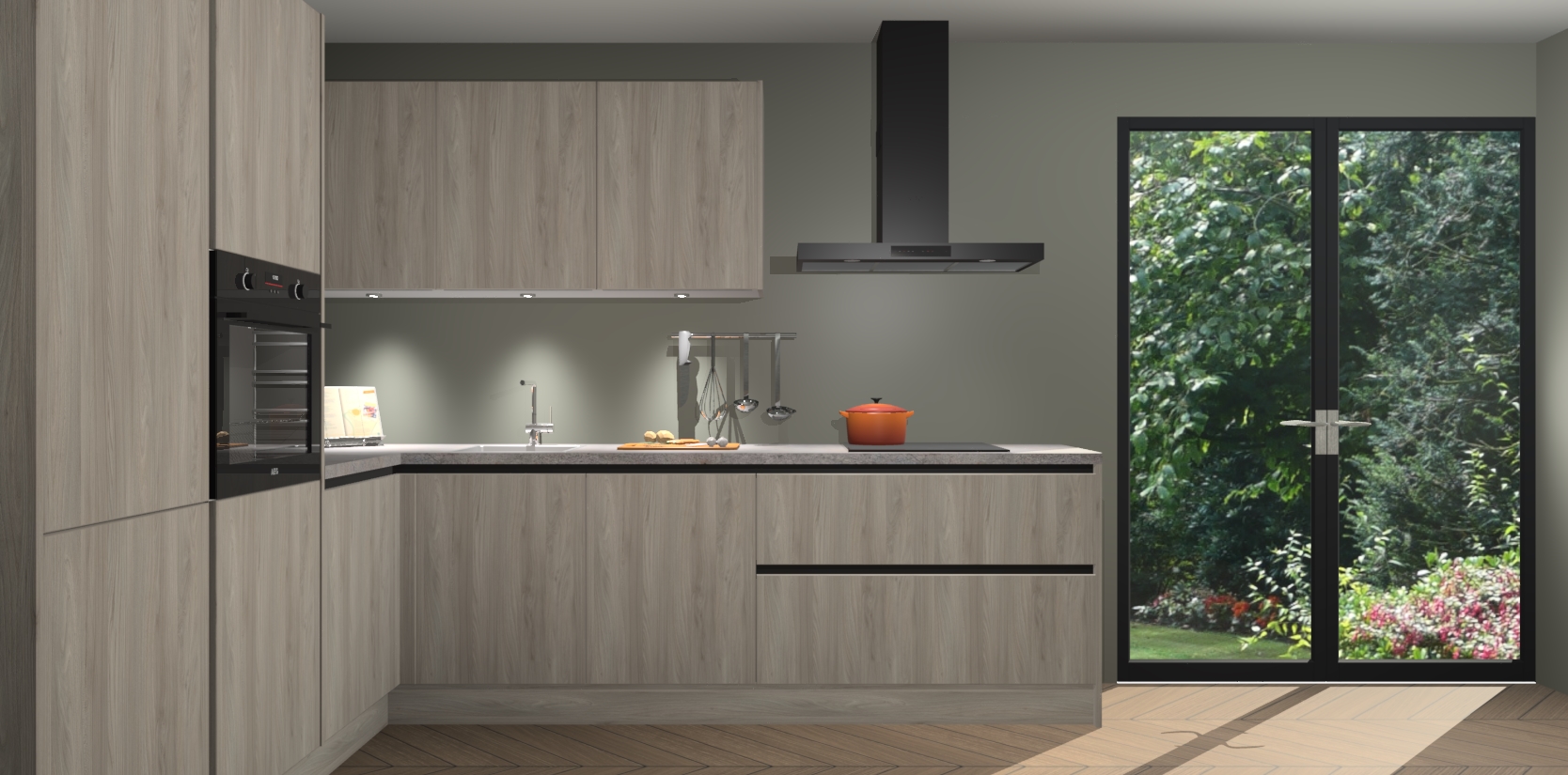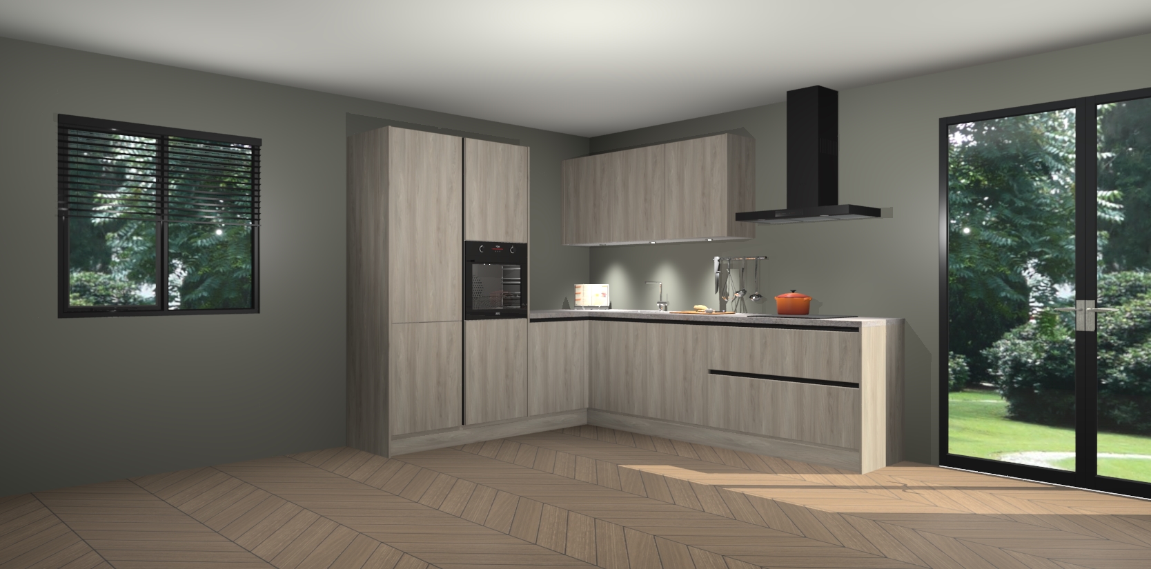 Maak kennis met de olm greeploze keuken Parla - de perfecte aanvulling voor uw moderne keuken! Ervaar tijdloos design, elegantie en een chique uitstraling met onze zwarte handgrepen, soft-close deuren en veel opbergruimte. Dit alles wordt aangeboden tegen een vaste lage prijs voor ongeëvenaarde Duitse keukenkwaliteit!