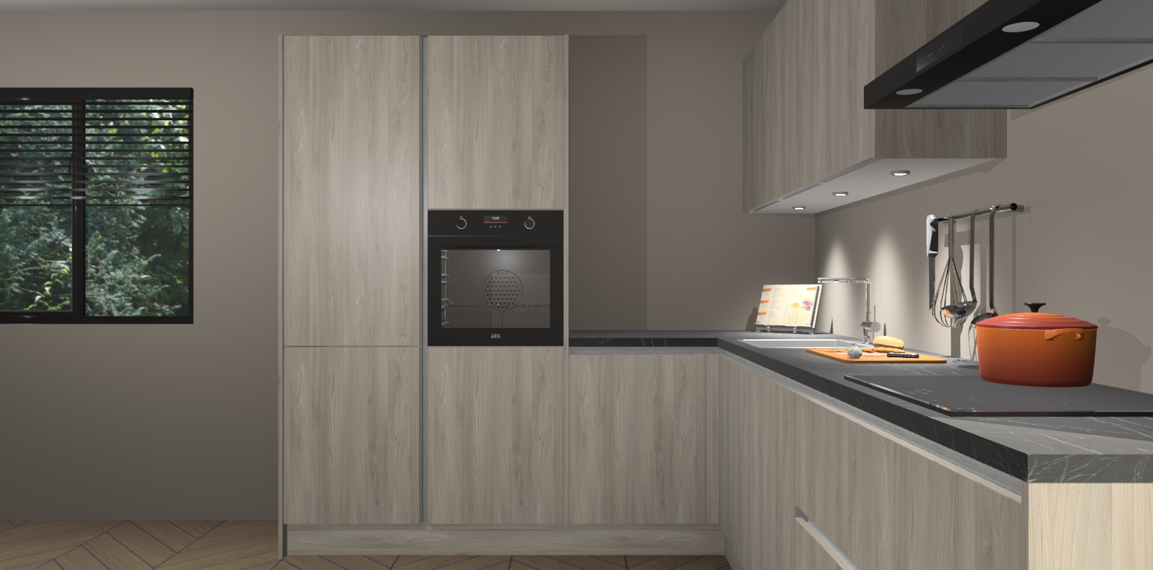 Maak kennis met de olm greeploze keuken Parla - de perfecte aanvulling voor uw moderne keuken! Ervaar tijdloos design, elegantie en een chique uitstraling met onze zwarte handgrepen, soft-close deuren en veel opbergruimte. Dit alles wordt aangeboden tegen een vaste lage prijs voor ongeëvenaarde Duitse keukenkwaliteit!