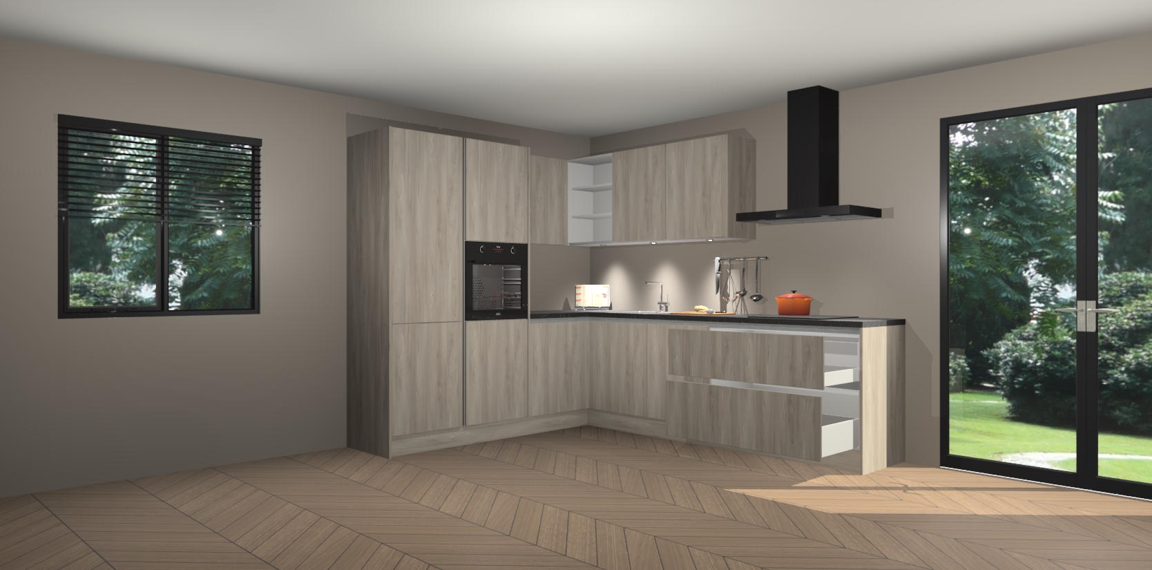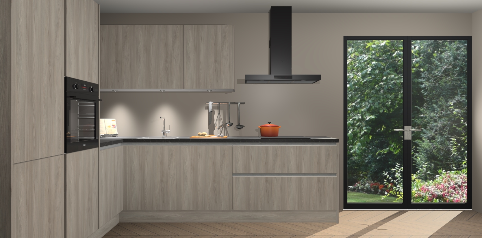 Met de olm greeploze keuken Parla Maakt u van uw keuken het pronkstuk van uw huis. Stijlvol en toch praktisch, de nieuwste look voor wie meer waarde en charme aan zijn huis wil toevoegen. Met prachtige zwarte handgrepen die zich lenen voor een klassieke stijlbron, zal u niet teleurgesteld zijn in het resultaat. De soft-close deurscharnieren geven een gevoel van luxe omdat ze zachtjes bewegen zonder storende of krakende geluiden te veroorzaken.