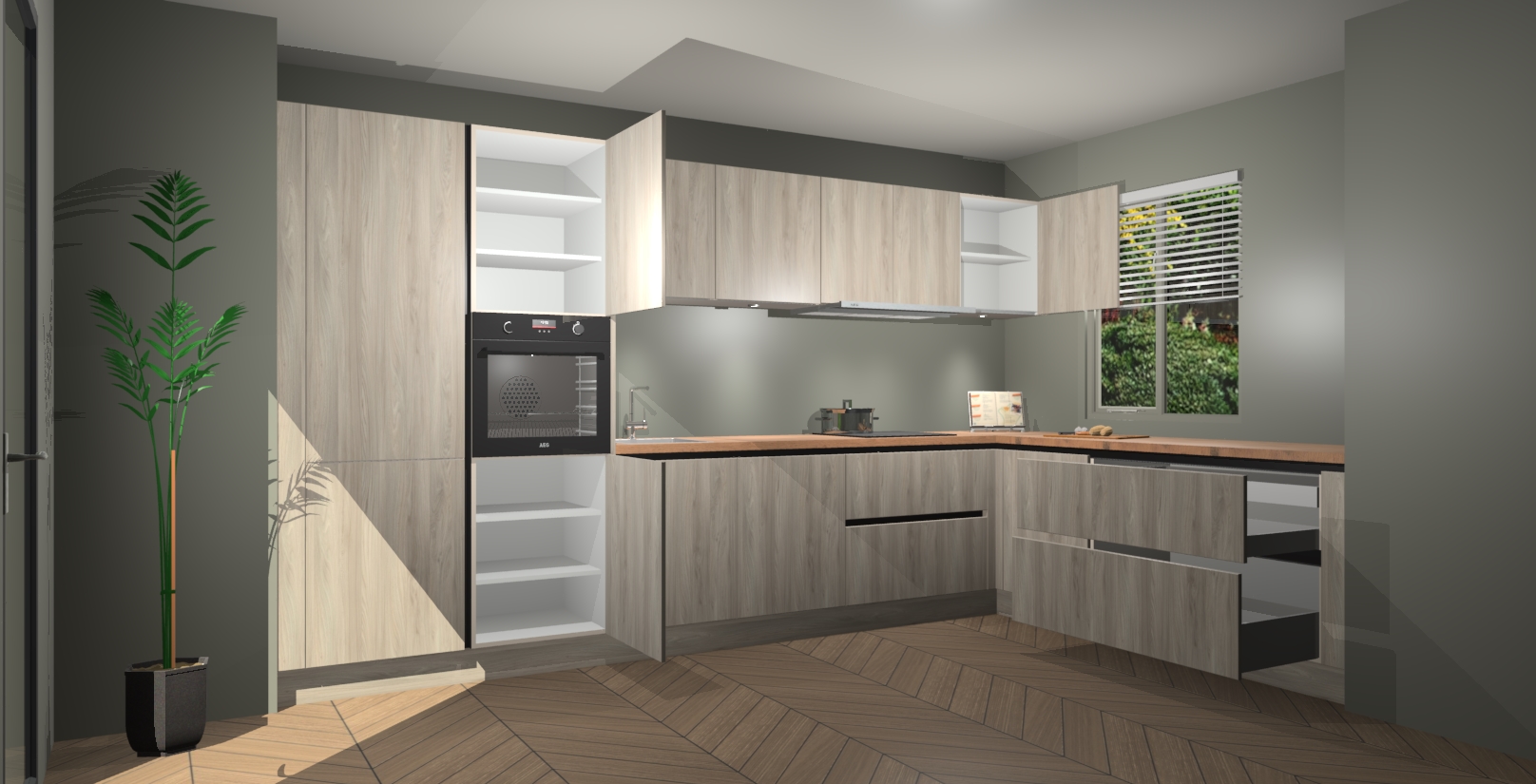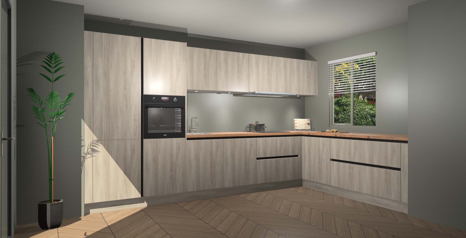 Verwelkom de natuurlijke warmte van de Olm greeploze keuken Petten in uw huis. Deze prachtige hoekkeuken met zijn moderne design en warme houten look geeft u meer dan genoeg opbergruimte om uw comfortabel te voelen in uw keuken. Geniet van soft-close deuren die al uw gasten het gevoel zullen geven dat ze zich in een luxueuze ruimte bevinden.