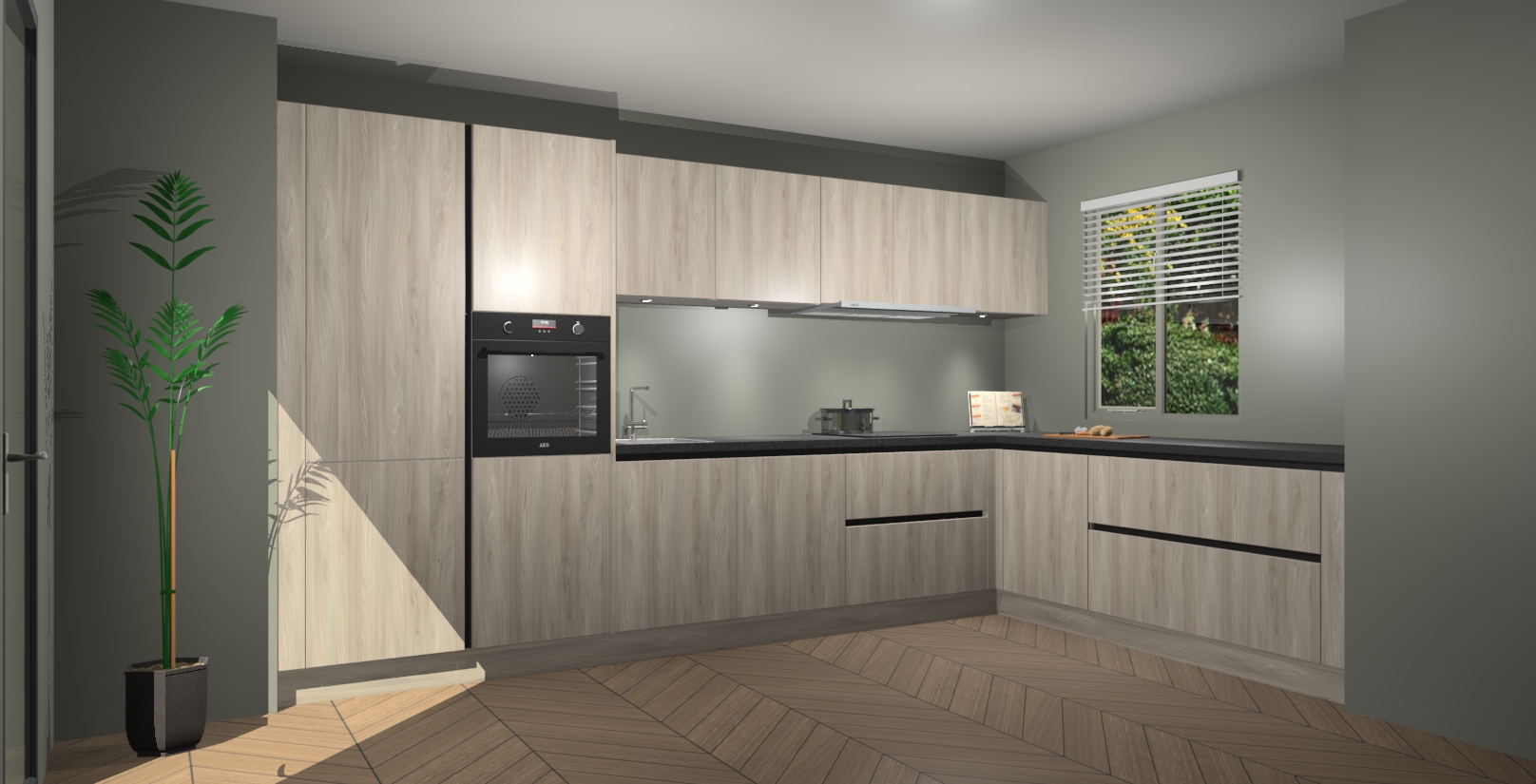 Verwelkom de natuurlijke warmte van de Olm greeploze keuken Petten in uw huis. Deze prachtige hoekkeuken met zijn moderne design en warme houten look geeft u meer dan genoeg opbergruimte om uw comfortabel te voelen in uw keuken. Geniet van soft-close deuren die al uw gasten het gevoel zullen geven dat ze zich in een luxueuze ruimte bevinden.