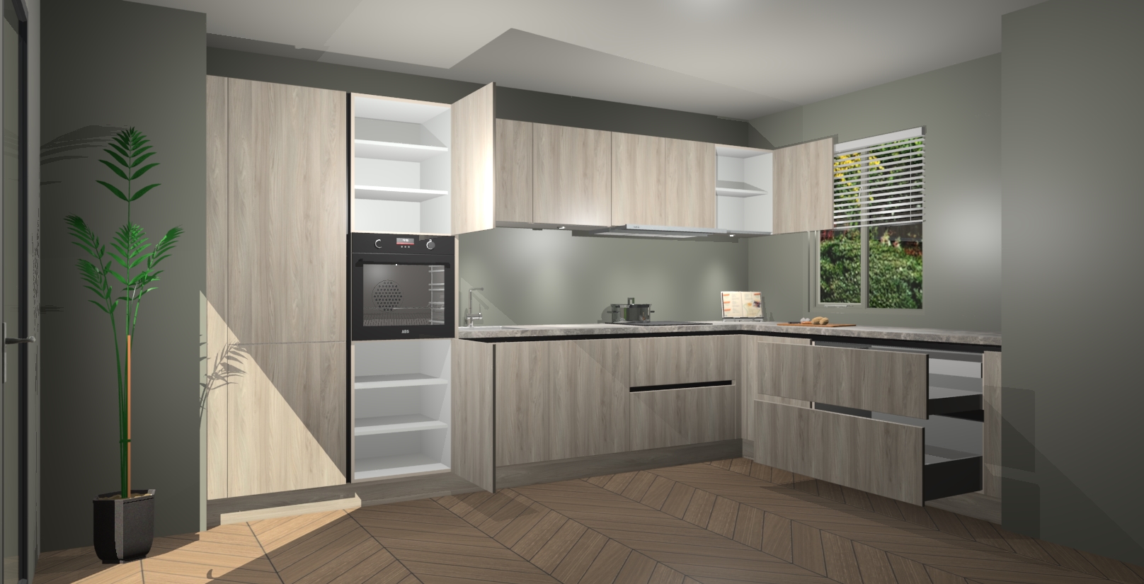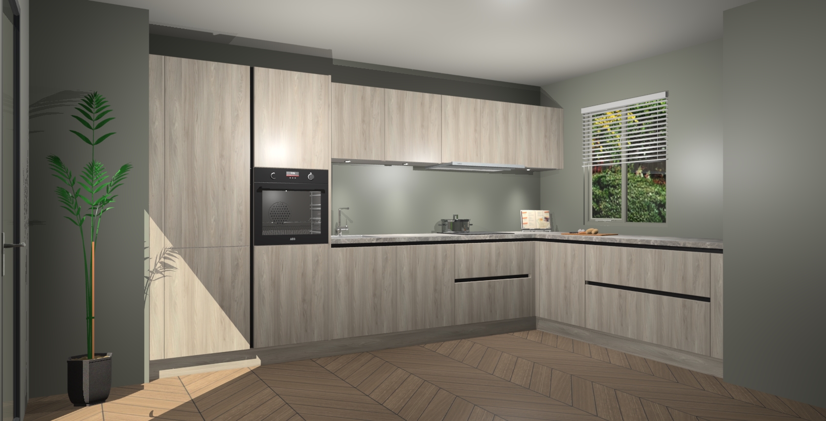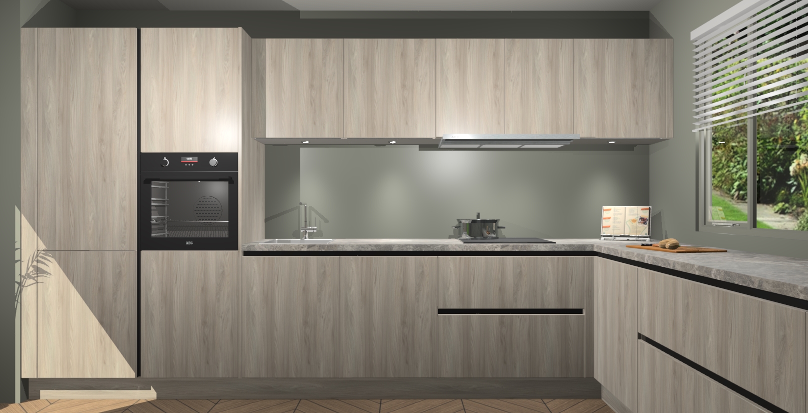 Verwelkom de natuurlijke warmte van de Olm greeploze keuken Petten in uw huis. Deze prachtige hoekkeuken met zijn moderne design en warme houten look geeft u meer dan genoeg opbergruimte om uw comfortabel te voelen in uw keuken. Geniet van soft-close deuren die al uw gasten het gevoel zullen geven dat ze zich in een luxueuze ruimte bevinden.