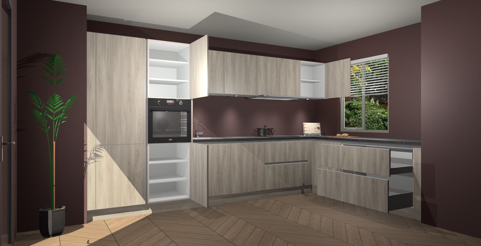Verwelkom de natuurlijke warmte van de Olm greeploze keuken Petten in uw huis. Deze prachtige hoekkeuken met zijn moderne design en warme houten look geeft u meer dan genoeg opbergruimte om uw comfortabel te voelen in uw keuken. Geniet van soft-close deuren die al uw gasten het gevoel zullen geven dat ze zich in een luxueuze ruimte bevinden.