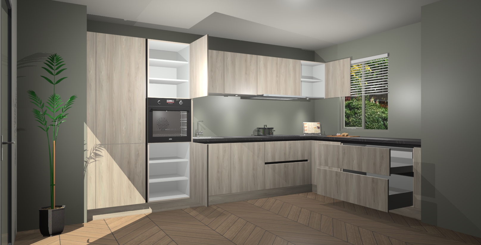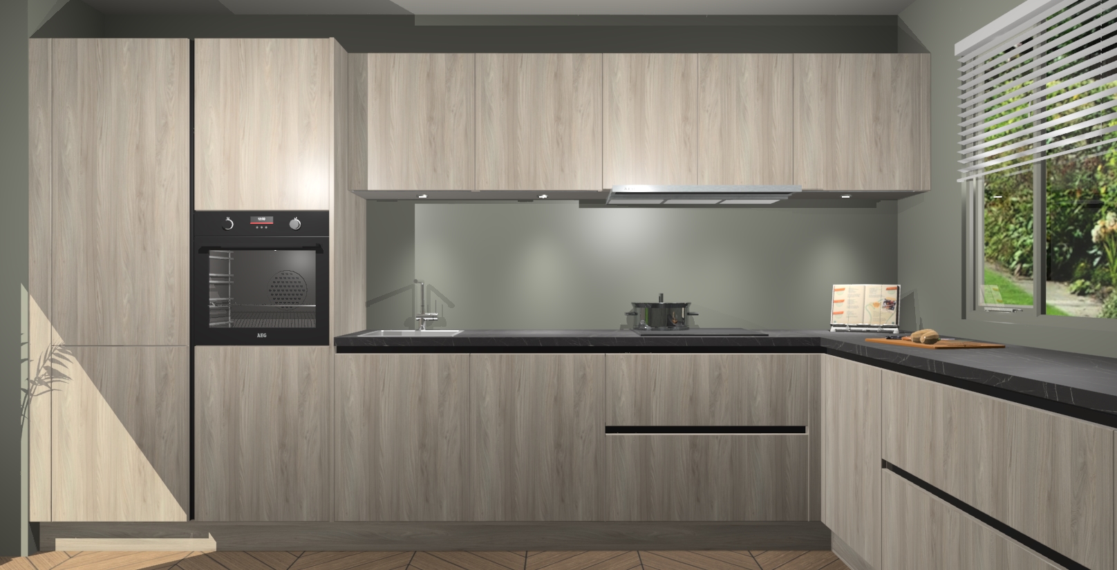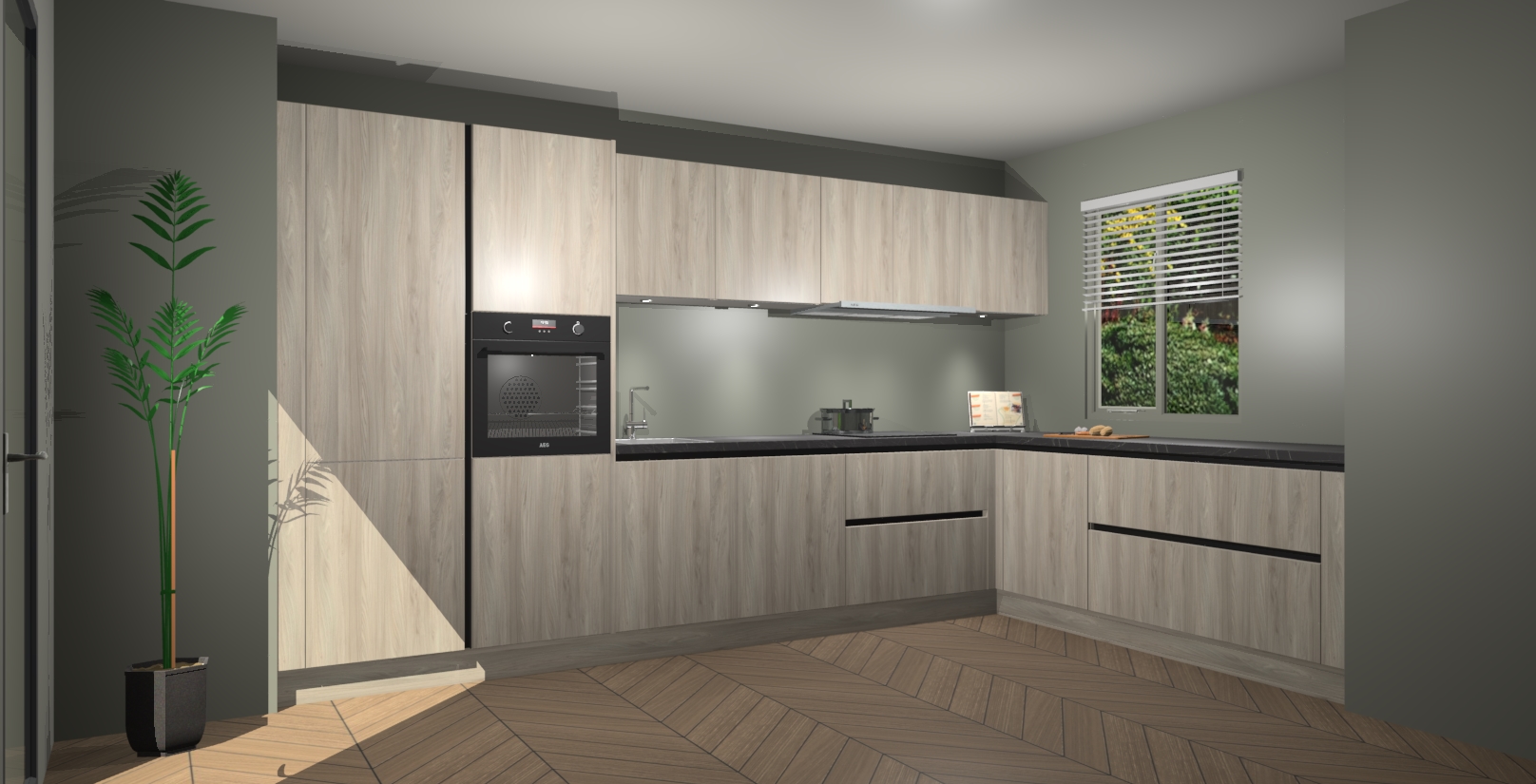 Verwelkom de natuurlijke warmte van de Olm greeploze keuken Petten in uw huis. Deze prachtige hoekkeuken met zijn moderne design en warme houten look geeft u meer dan genoeg opbergruimte om uw comfortabel te voelen in uw keuken. Geniet van soft-close deuren die al uw gasten het gevoel zullen geven dat ze zich in een luxueuze ruimte bevinden.