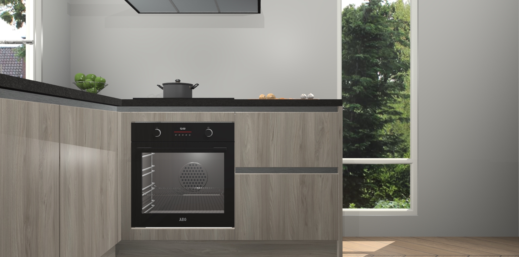 De Olm greeploze keuken Phuket heeft alles wat u maar kunt wensen. Niet alleen zijn er softclose deuren, maar ook 5 ingebouwde apparaten: een oven, inductiekookplaat, afzuigkap, vaatwasser en koelkast - waarbij u later gemakkelijk naar het AEG merk, van inductiekookplaat naar kookplaat met geïntegreerde afzuiging of van oven naar combimagnetron kunt upgraden. Dat alles tegen een vast laag tarief! Bovendien geeft de Olm greeploze keuken Phuket supersnelle levering van 7 weken. Echt iets voor u als u er niet op wilt wachten om het resultaat te zien in eigen keuken!