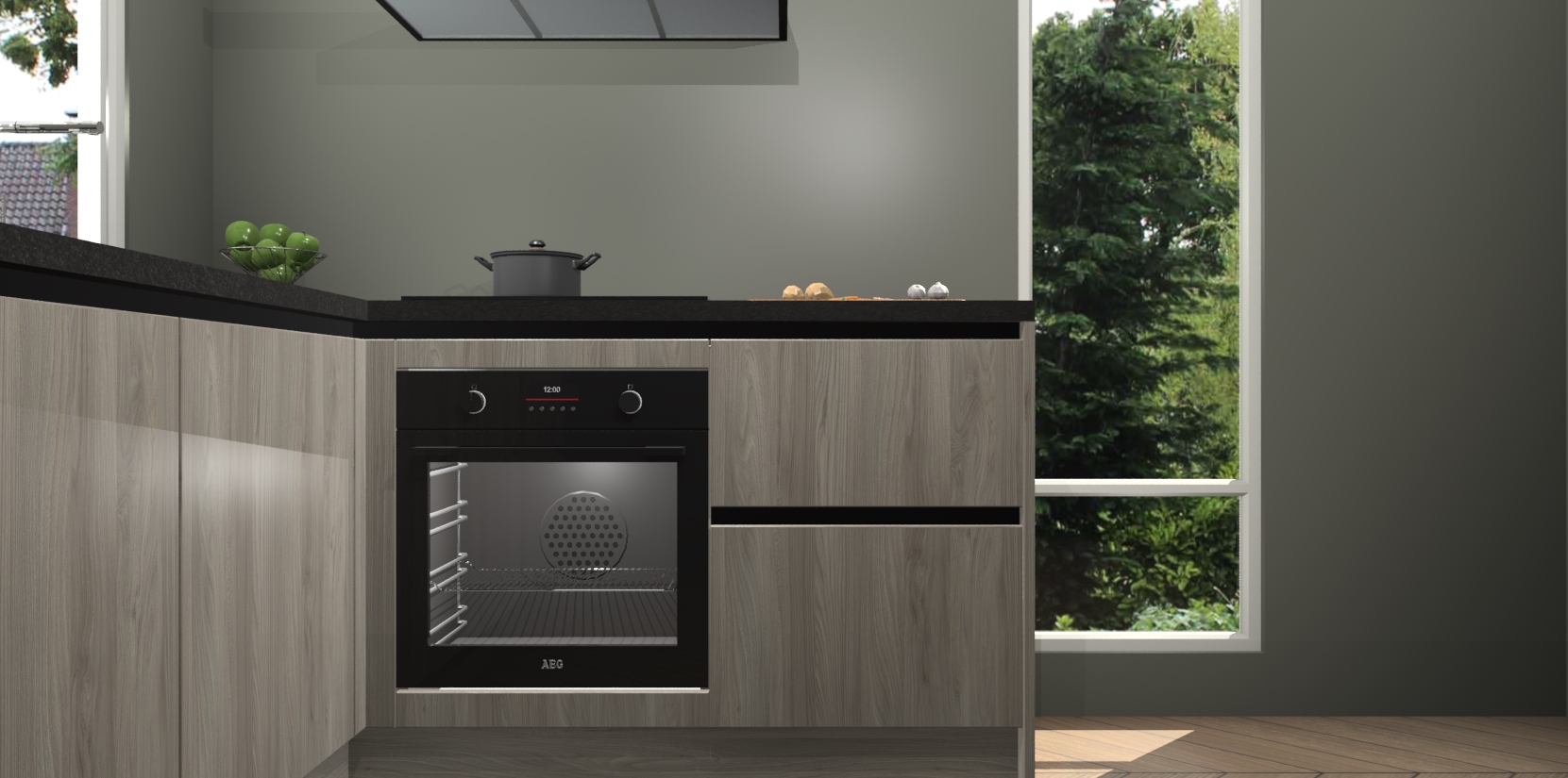 De Olm greeploze keuken Phuket heeft alles wat u maar kunt wensen. Niet alleen zijn er softclose deuren, maar ook 5 ingebouwde apparaten: een oven, inductiekookplaat, afzuigkap, vaatwasser en koelkast - waarbij u later gemakkelijk naar het AEG merk, van inductiekookplaat naar kookplaat met geïntegreerde afzuiging of van oven naar combimagnetron kunt upgraden. Dat alles tegen een vast laag tarief! Bovendien geeft de Olm greeploze keuken Phuket supersnelle levering van 7 weken. Echt iets voor u als u er niet op wilt wachten om het resultaat te zien in eigen keuken!