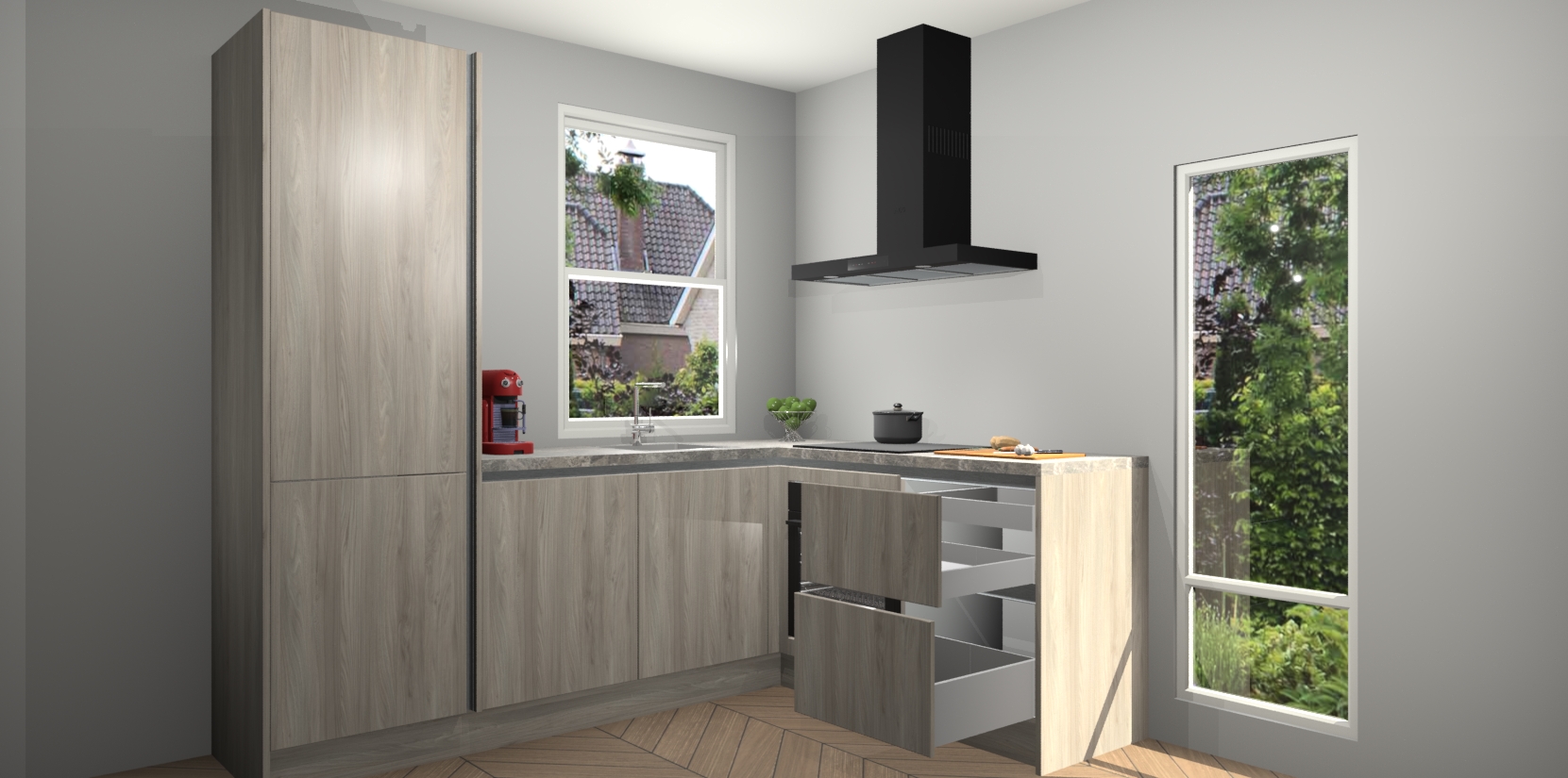 De prachtige Olm greeploze keuken Phuket is de perfecte keuze als u op zoek bent naar een moderne hoekkeuken met alle luxe en comfort die u kunt verwachten! De uitstraling in het houtlook-design draagt bij aan de warme sfeer die u nu al voelt wanneer u er naar kijkt. Heeft u genoeg van ouderwetse keukens? Probeer dan direct deze moderne, mooie hoekkeukens en laat iedereen verbluft achter!