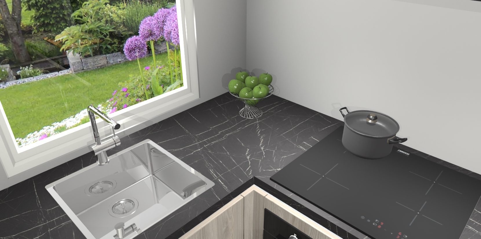 - Bij een hoekwerkblad zijn de hoeken in gevreesd en op maat gemaakt