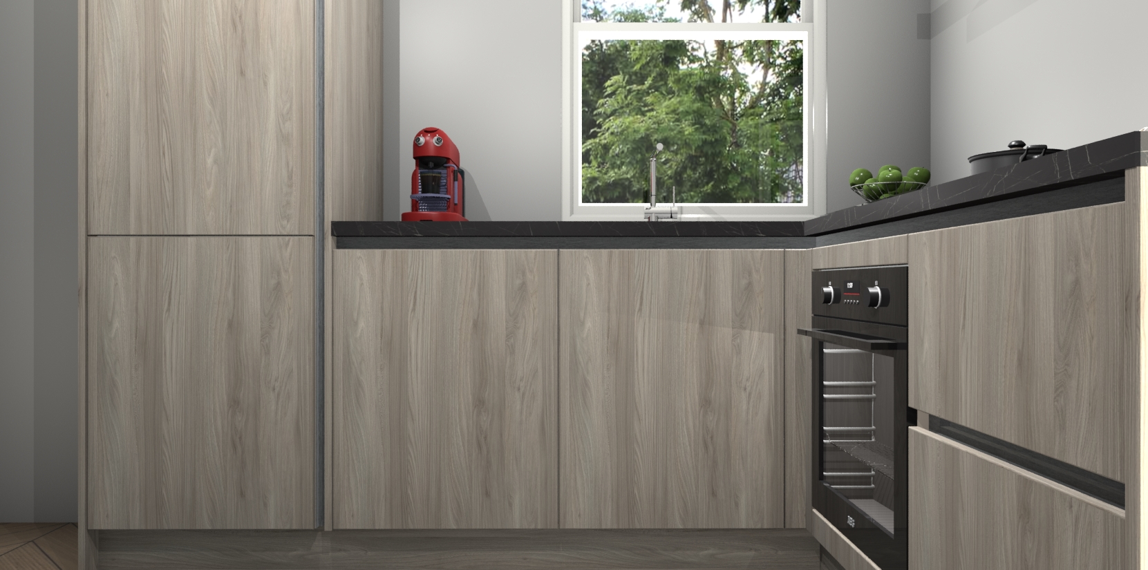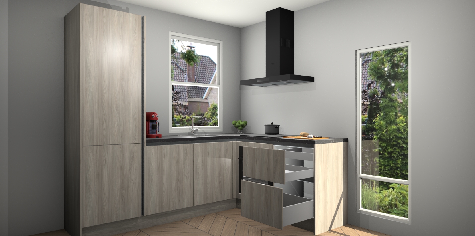 De prachtige Olm greeploze keuken Phuket is de perfecte keuze als u op zoek bent naar een moderne hoekkeuken met alle luxe en comfort die u kunt verwachten! De uitstraling in het houtlook-design draagt bij aan de warme sfeer die u nu al voelt wanneer u er naar kijkt. Heeft u genoeg van ouderwetse keukens? Probeer dan direct deze moderne, mooie hoekkeukens en laat iedereen verbluft achter!