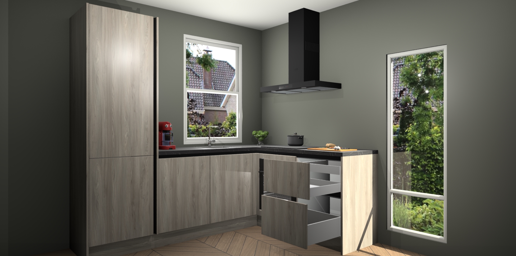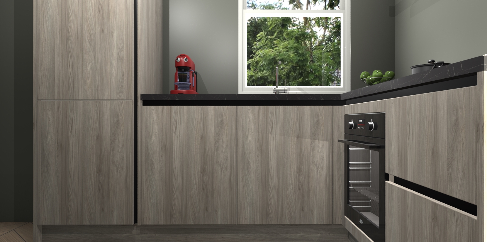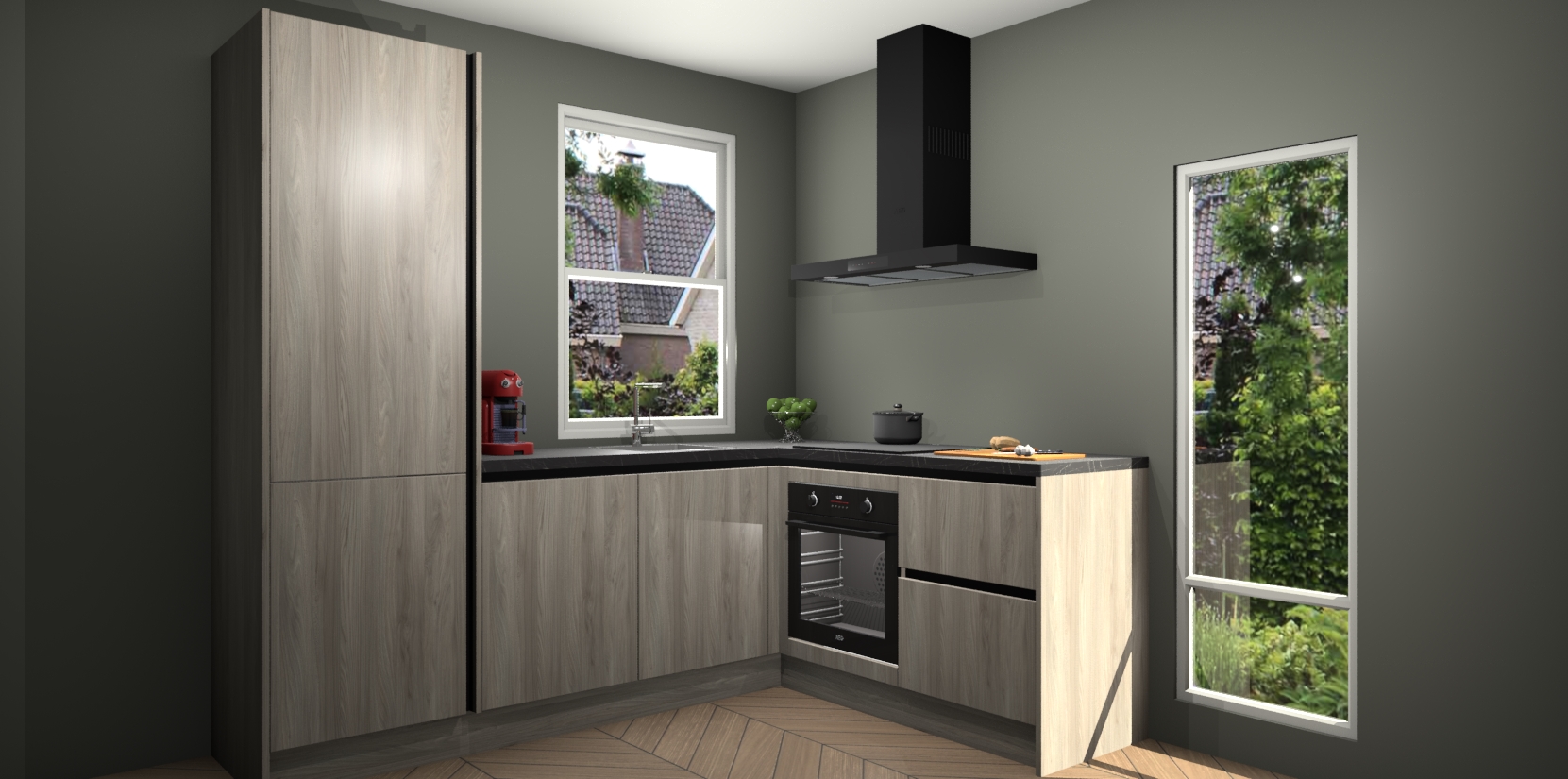 De prachtige Olm greeploze keuken Phuket is de perfecte keuze als u op zoek bent naar een moderne hoekkeuken met alle luxe en comfort die u kunt verwachten! De uitstraling in het houtlook-design draagt bij aan de warme sfeer die u nu al voelt wanneer u er naar kijkt. Heeft u genoeg van ouderwetse keukens? Probeer dan direct deze moderne, mooie hoekkeukens en laat iedereen verbluft achter!