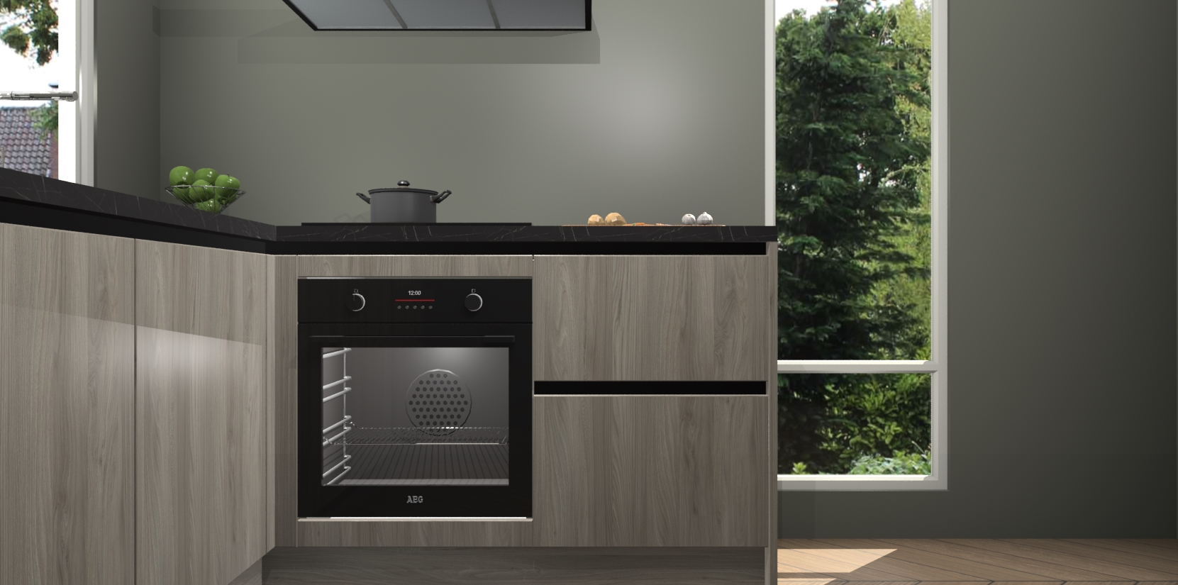 De Olm greeploze keuken Phuket heeft alles wat u maar kunt wensen. Niet alleen zijn er softclose deuren, maar ook 5 ingebouwde apparaten: een oven, inductiekookplaat, afzuigkap, vaatwasser en koelkast - waarbij u later gemakkelijk naar het AEG merk, van inductiekookplaat naar kookplaat met geïntegreerde afzuiging of van oven naar combimagnetron kunt upgraden. Dat alles tegen een vast laag tarief! Bovendien geeft de Olm greeploze keuken Phuket supersnelle levering van 7 weken. Echt iets voor u als u er niet op wilt wachten om het resultaat te zien in eigen keuken!