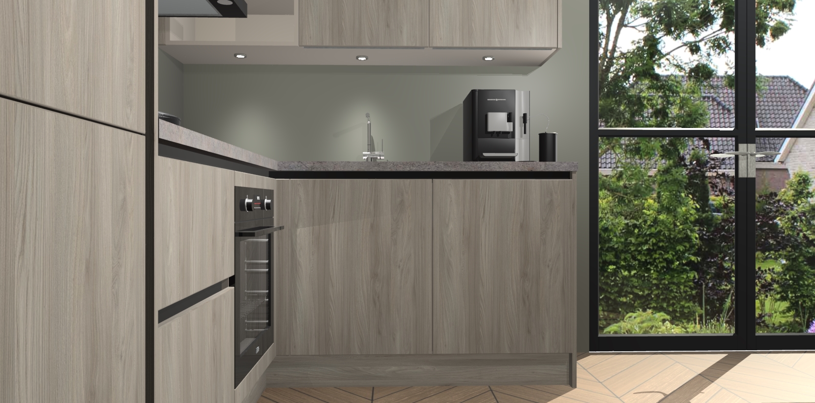 Wauw, dit is de Olm greeploze keuken Pilsen! U kunt gerust zeggen dat u elegantie combineert met functionaliteit met deze keuken. Met een modern en chique ontwerp is de keuken precies wat u nodig heeft om uw ruimte te verfraaien. De binnenzijde van de kasten is in dezelfde donkere kleur als de buitenzijde voor een uniforme look, compleet met softclose-kasten die stil sluiten.
