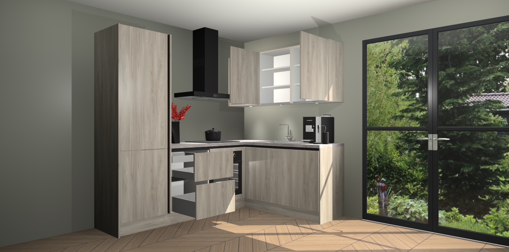 In deze box zijn alle kleuren verzameld van de deuren en werkbladen. Vraag de gratis kleurenbox aan en kijk thuis rustig verder!