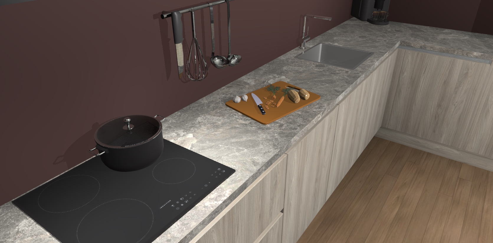 - Bij een hoekwerkblad zijn de hoeken in gevreesd en op maat gemaakt