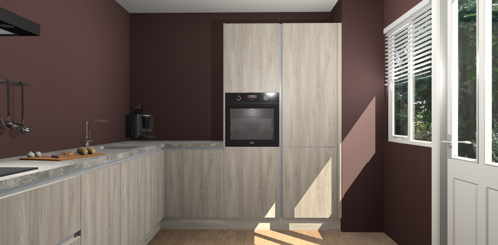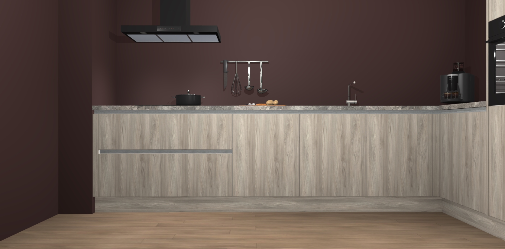 Welkom bij de Olm greeploze keuken Portland. Deze prachtige keuken zal de komende jaren het middelpunt van de belangstelling in uw huis zijn. Uitgerust met vijf inbouwapparaten komt u nooit kookgereedschap tekort. Bovendien geeft de warme houtlook elke ruimte een uitnodigende en tijdloze uitstraling.