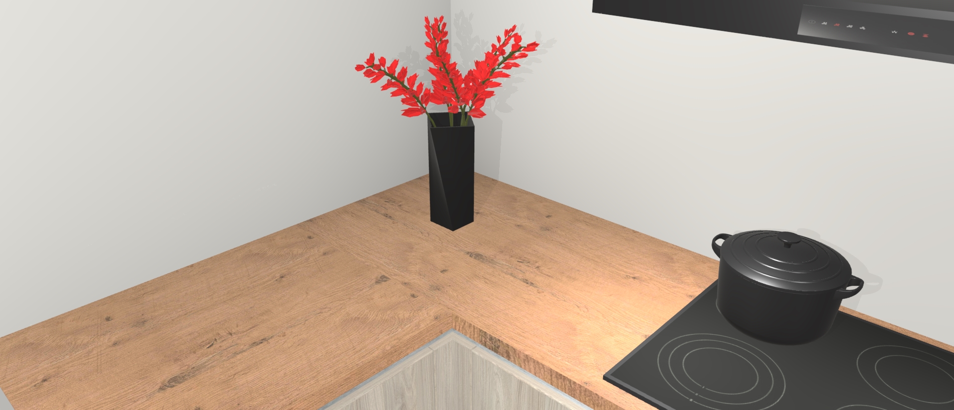 - Bij een hoekwerkblad zijn de hoeken in gevreesd en op maat gemaakt