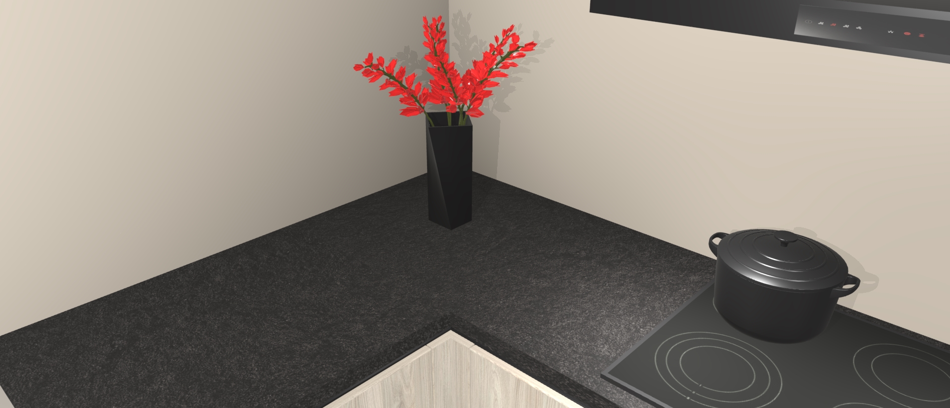 - Bij een hoekwerkblad zijn de hoeken in gevreesd en op maat gemaakt