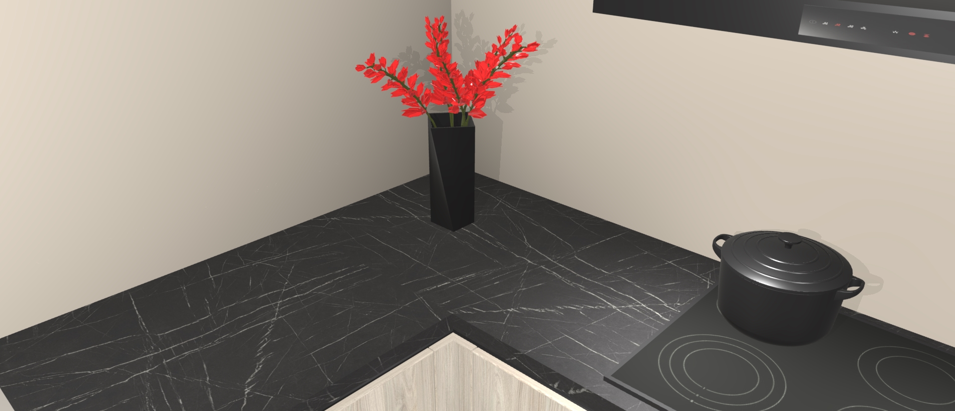 - Bij een hoekwerkblad zijn de hoeken in gevreesd en op maat gemaakt