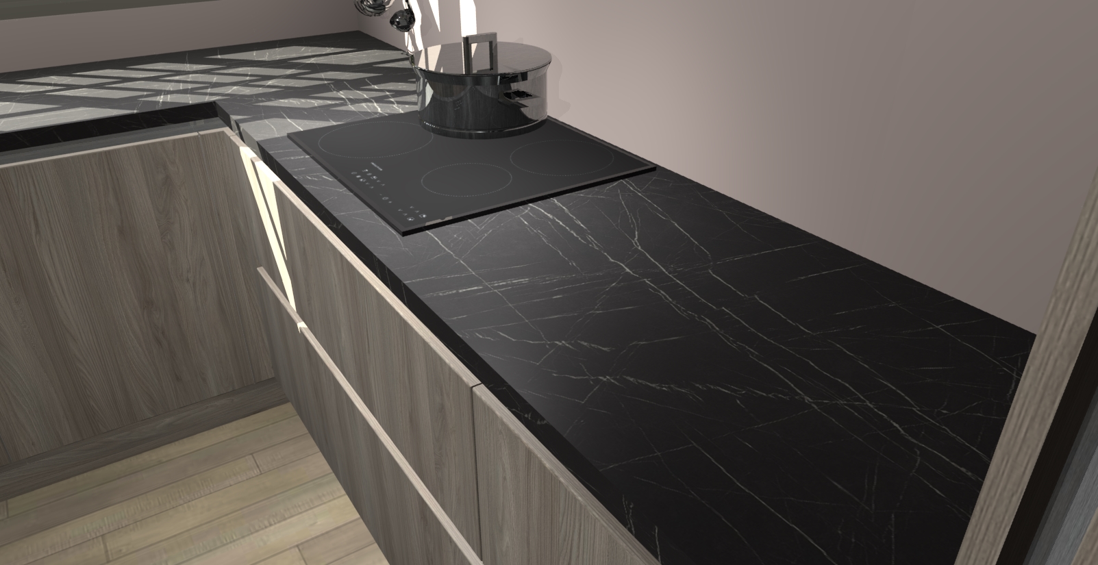 - Bij een hoekwerkblad zijn de hoeken in gevreesd en op maat gemaakt