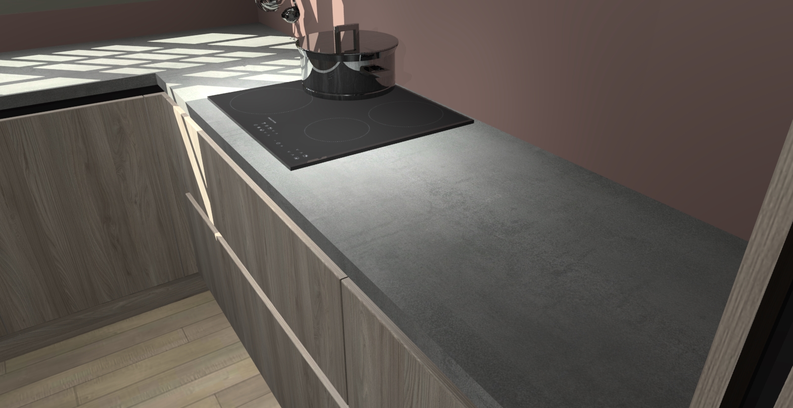 - Bij een hoekwerkblad zijn de hoeken in gevreesd en op maat gemaakt