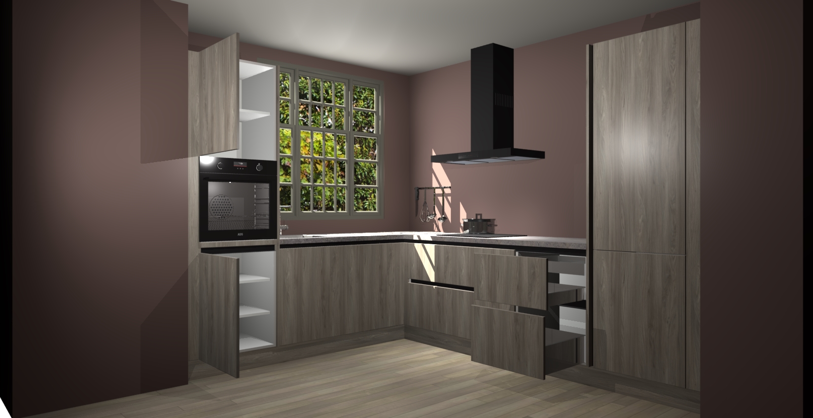 Met een modern, tijdloos design en ruime opslagruimte, zult u zich in no-time thuis voelen in uw nieuwe keuken. Uw leven wordt eenvoudiger met de soft-close deuren die voor het ultieme stille comfort zorgen - geen geluid dat u stoort terwijl u kookt. Ook is de keuken voorzien van 5 ingebouwde apparaten: een oven, inductie kookplaat, afzuigkap, vaatwasser en koelkast. Deze kunnen gemakkelijk na bestelling worden bijgewerkt naar AEG - waardoor uw luxe ervaring compleet is.