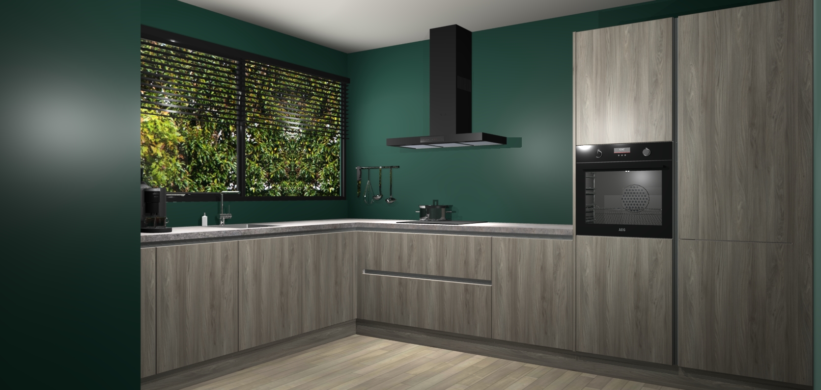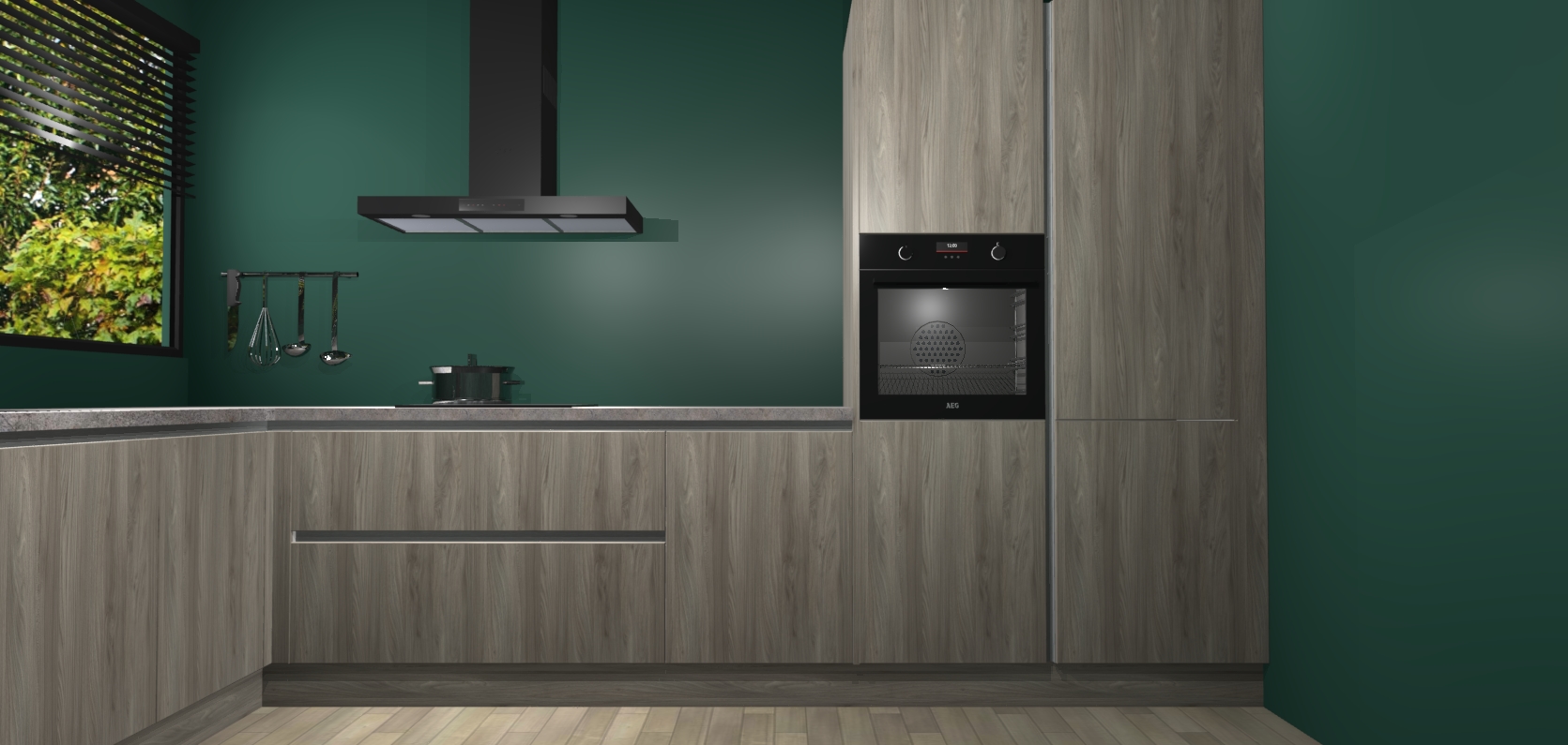 Met een modern, tijdloos design en ruime opslagruimte, zult u zich in no-time thuis voelen in uw nieuwe keuken. Uw leven wordt eenvoudiger met de soft-close deuren die voor het ultieme stille comfort zorgen - geen geluid dat u stoort terwijl u kookt. Ook is de keuken voorzien van 5 ingebouwde apparaten: een oven, inductie kookplaat, afzuigkap, vaatwasser en koelkast. Deze kunnen gemakkelijk na bestelling worden bijgewerkt naar AEG - waardoor uw luxe ervaring compleet is.