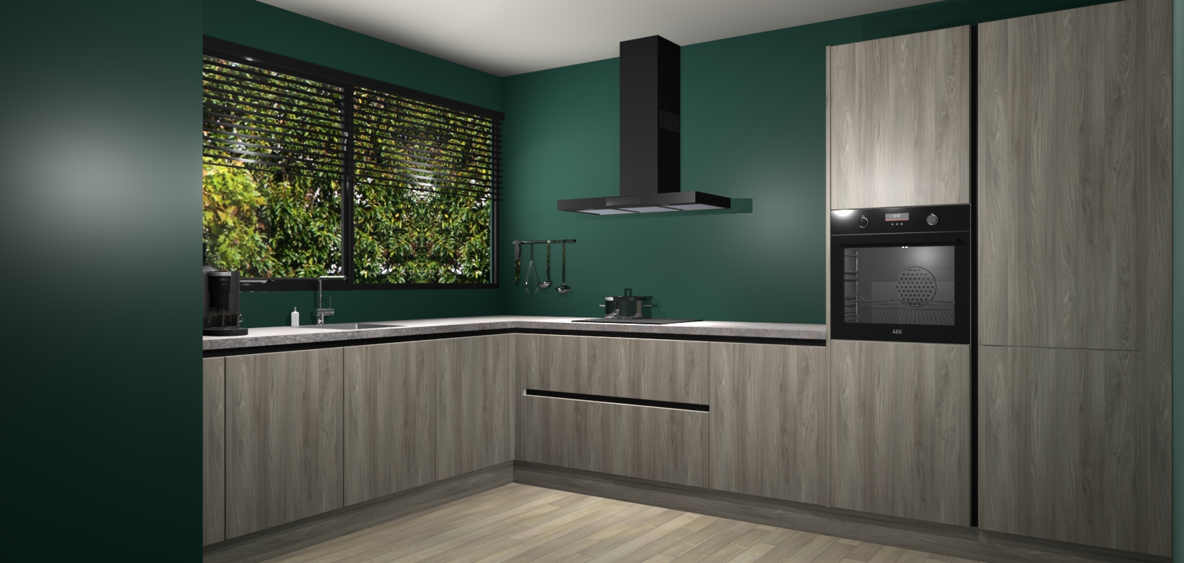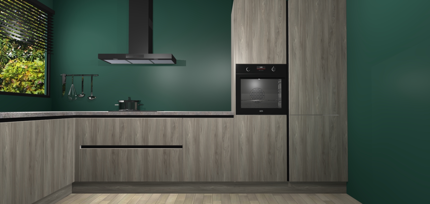 Met een modern, tijdloos design en ruime opslagruimte, zult u zich in no-time thuis voelen in uw nieuwe keuken. Uw leven wordt eenvoudiger met de soft-close deuren die voor het ultieme stille comfort zorgen - geen geluid dat u stoort terwijl u kookt. Ook is de keuken voorzien van 5 ingebouwde apparaten: een oven, inductie kookplaat, afzuigkap, vaatwasser en koelkast. Deze kunnen gemakkelijk na bestelling worden bijgewerkt naar AEG - waardoor uw luxe ervaring compleet is.