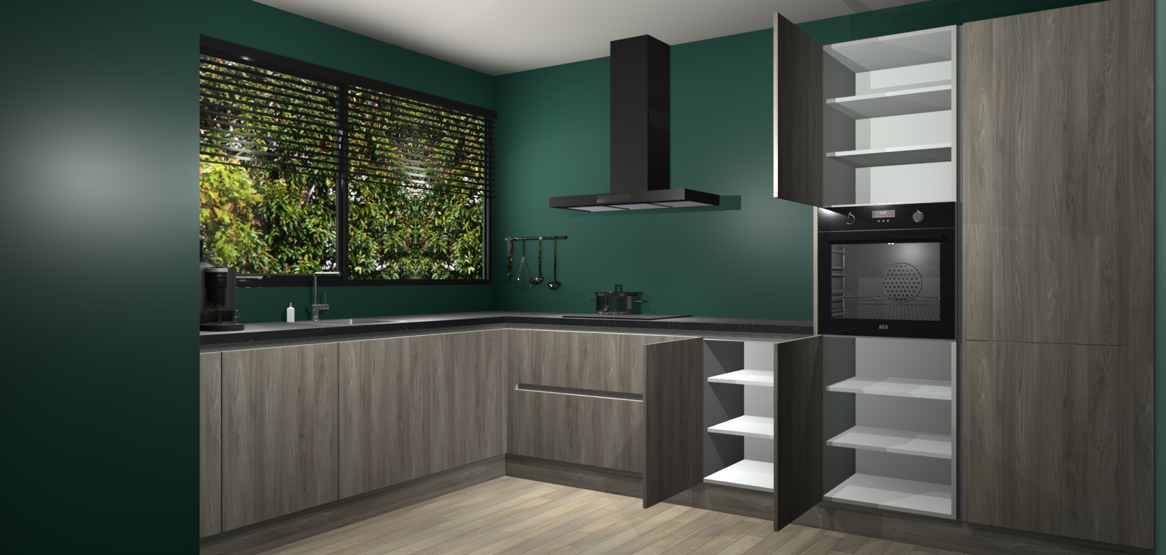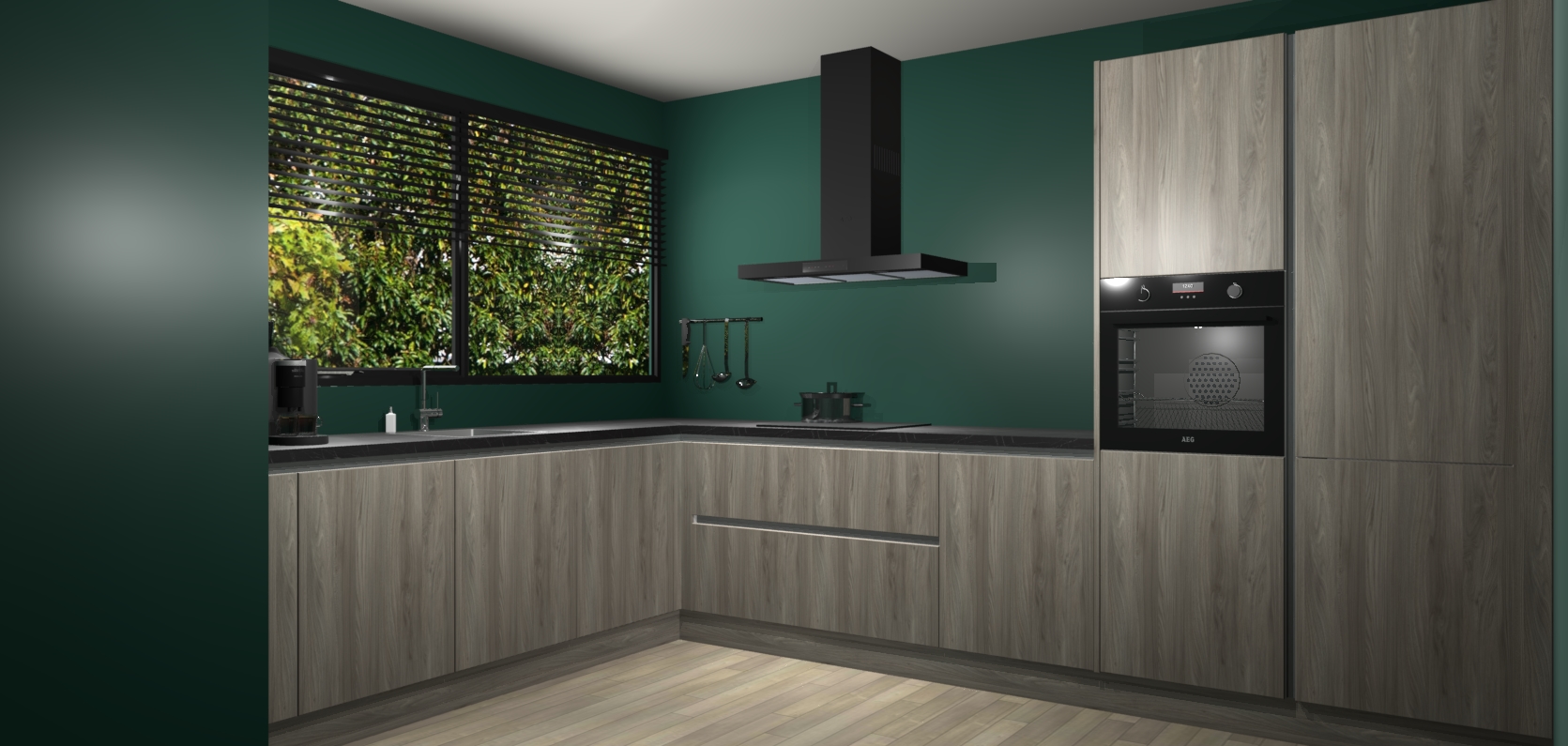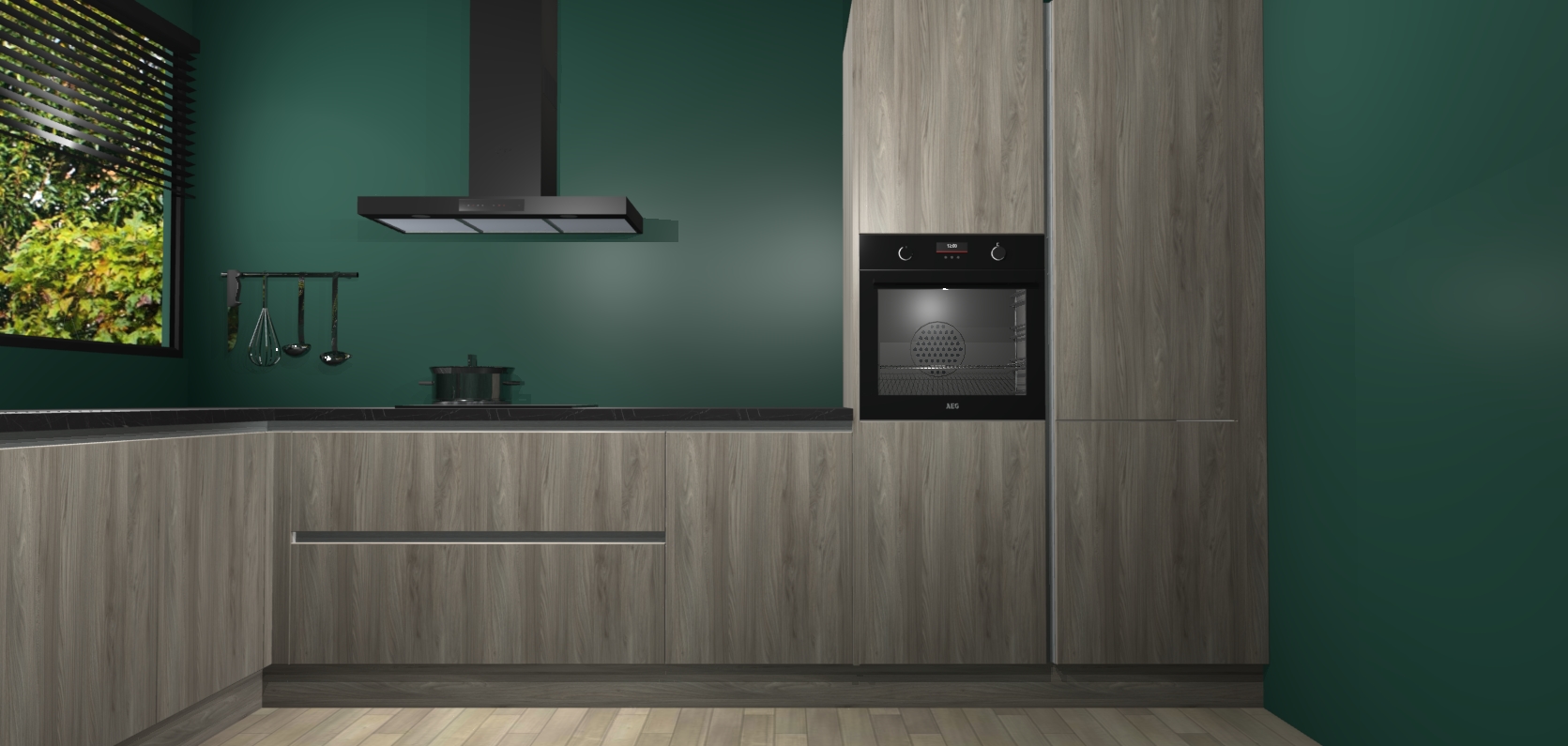 Met een modern, tijdloos design en ruime opslagruimte, zult u zich in no-time thuis voelen in uw nieuwe keuken. Uw leven wordt eenvoudiger met de soft-close deuren die voor het ultieme stille comfort zorgen - geen geluid dat u stoort terwijl u kookt. Ook is de keuken voorzien van 5 ingebouwde apparaten: een oven, inductie kookplaat, afzuigkap, vaatwasser en koelkast. Deze kunnen gemakkelijk na bestelling worden bijgewerkt naar AEG - waardoor uw luxe ervaring compleet is.
