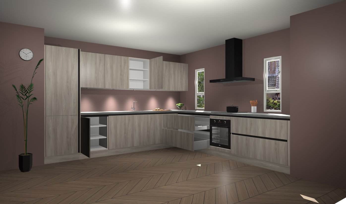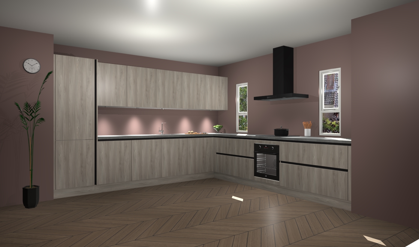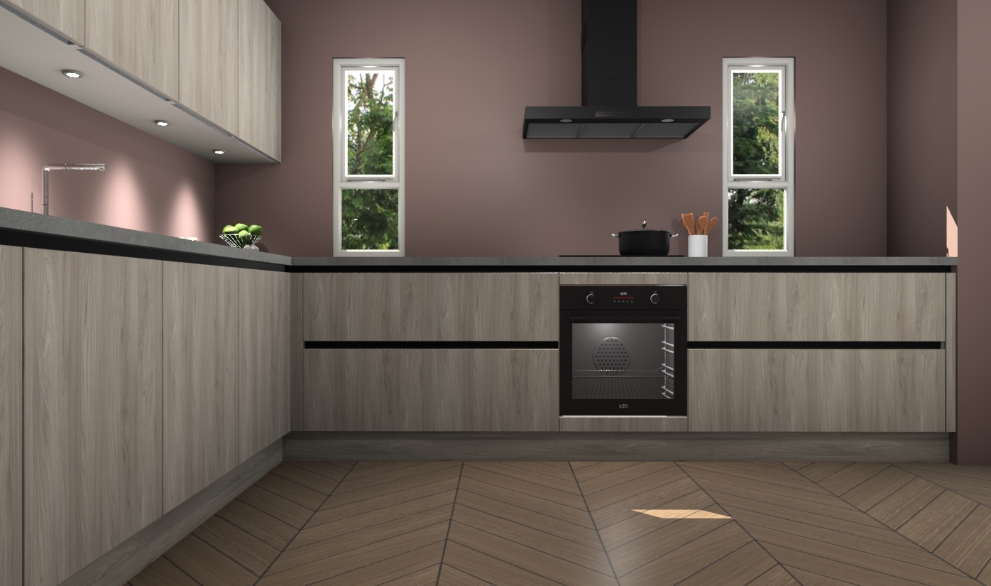 De olm greeploze keuken is een ideale hoekkeuken en heeft alle functies en apparatuur die u maar nodig kunt hebben. Bij de bestelling krijgt u een oven, inductiekookplaat, afzuigkap, vaatwasser en koelkast - deze kunnen desgewenst eenvoudig worden uitgebreid naar AEG na bestellen. Elke kast wordt ook voor gemonteerd geleverd met soft close deuren die jarenlang gebruik beloven. Stelt u zich voor dat u geen gedoe heeft met vervelende montage - vanaf het moment dat u uw bestelling plaats, duurt het slechts 7 weken voor het bij u thuis geleverd wordt.