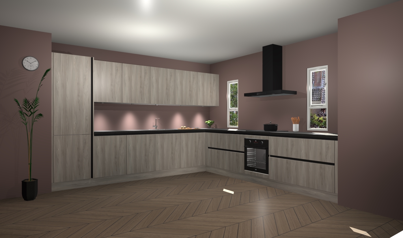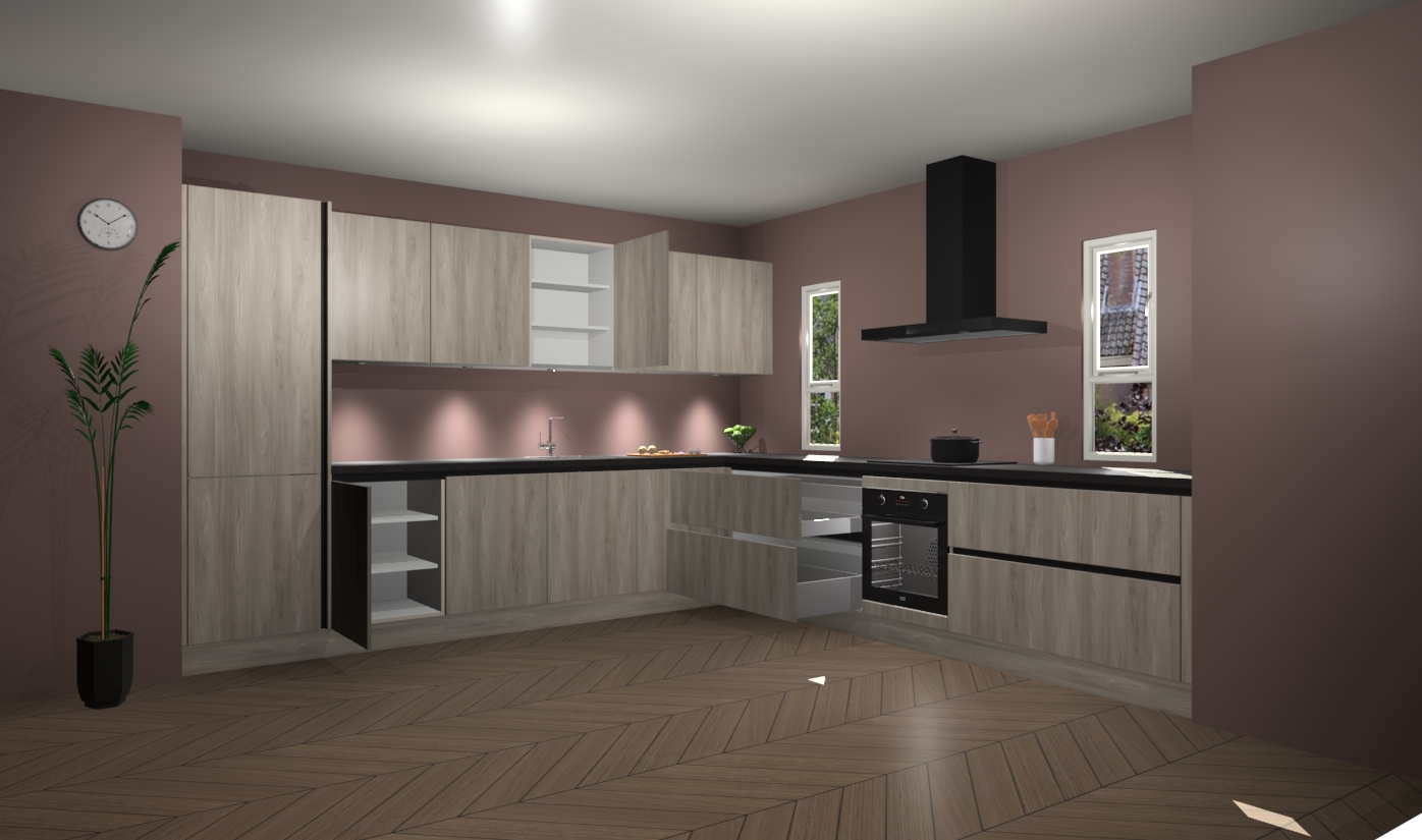 De olm greeploze keuken is een ideale hoekkeuken en heeft alle functies en apparatuur die u maar nodig kunt hebben. Bij de bestelling krijgt u een oven, inductiekookplaat, afzuigkap, vaatwasser en koelkast - deze kunnen desgewenst eenvoudig worden uitgebreid naar AEG na bestellen. Elke kast wordt ook voor gemonteerd geleverd met soft close deuren die jarenlang gebruik beloven. Stelt u zich voor dat u geen gedoe heeft met vervelende montage - vanaf het moment dat u uw bestelling plaats, duurt het slechts 7 weken voor het bij u thuis geleverd wordt.