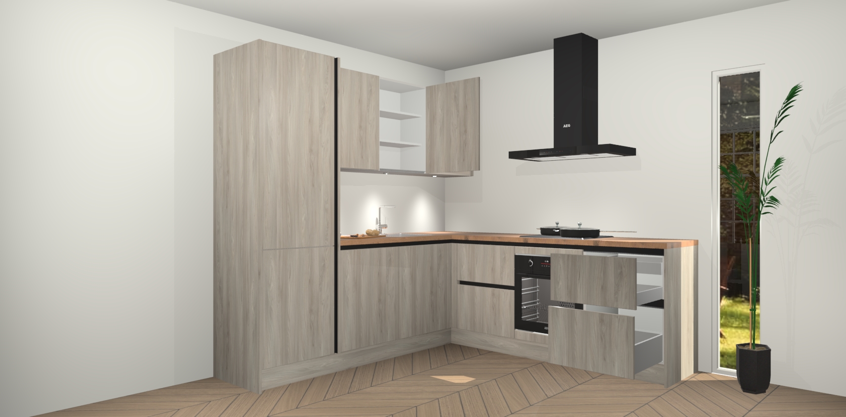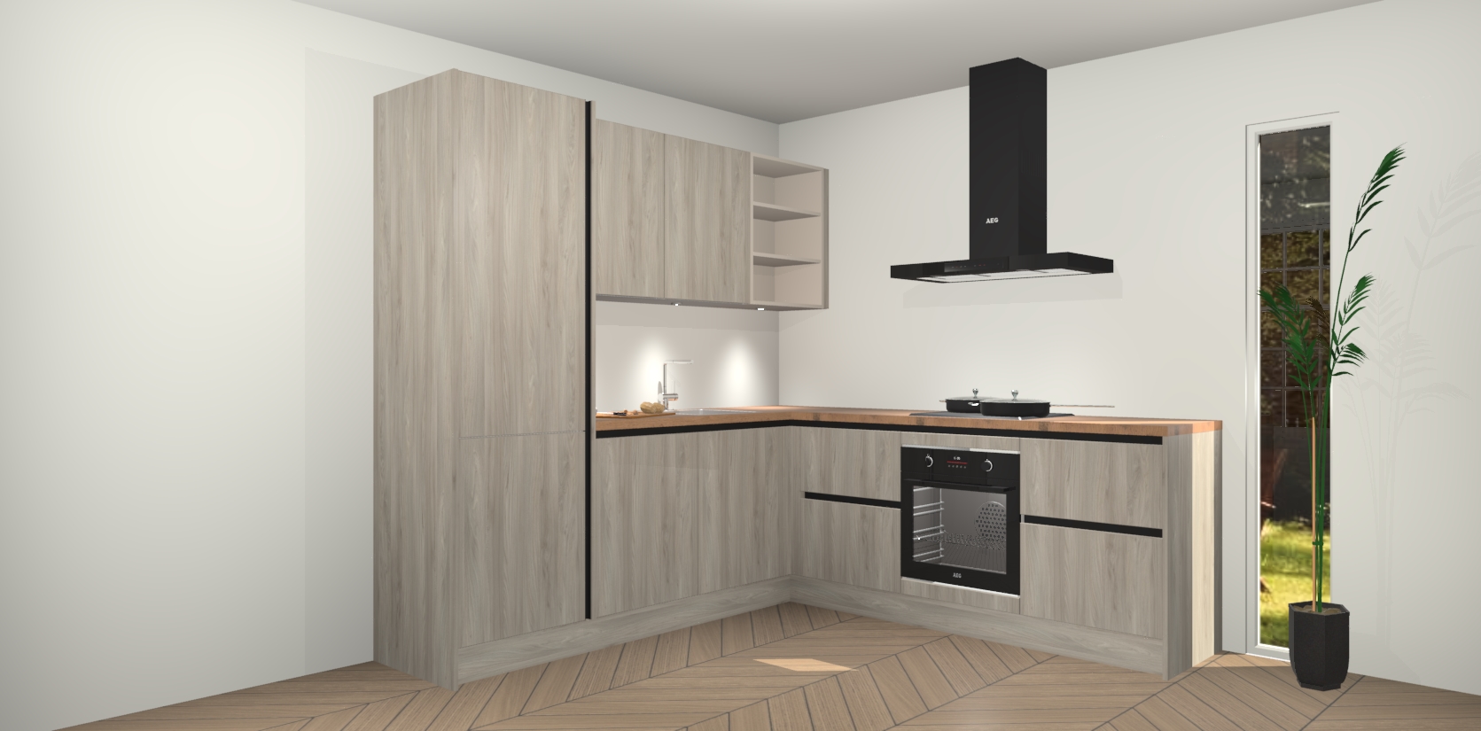 Inclusief plinten, stelpoten en werkblad