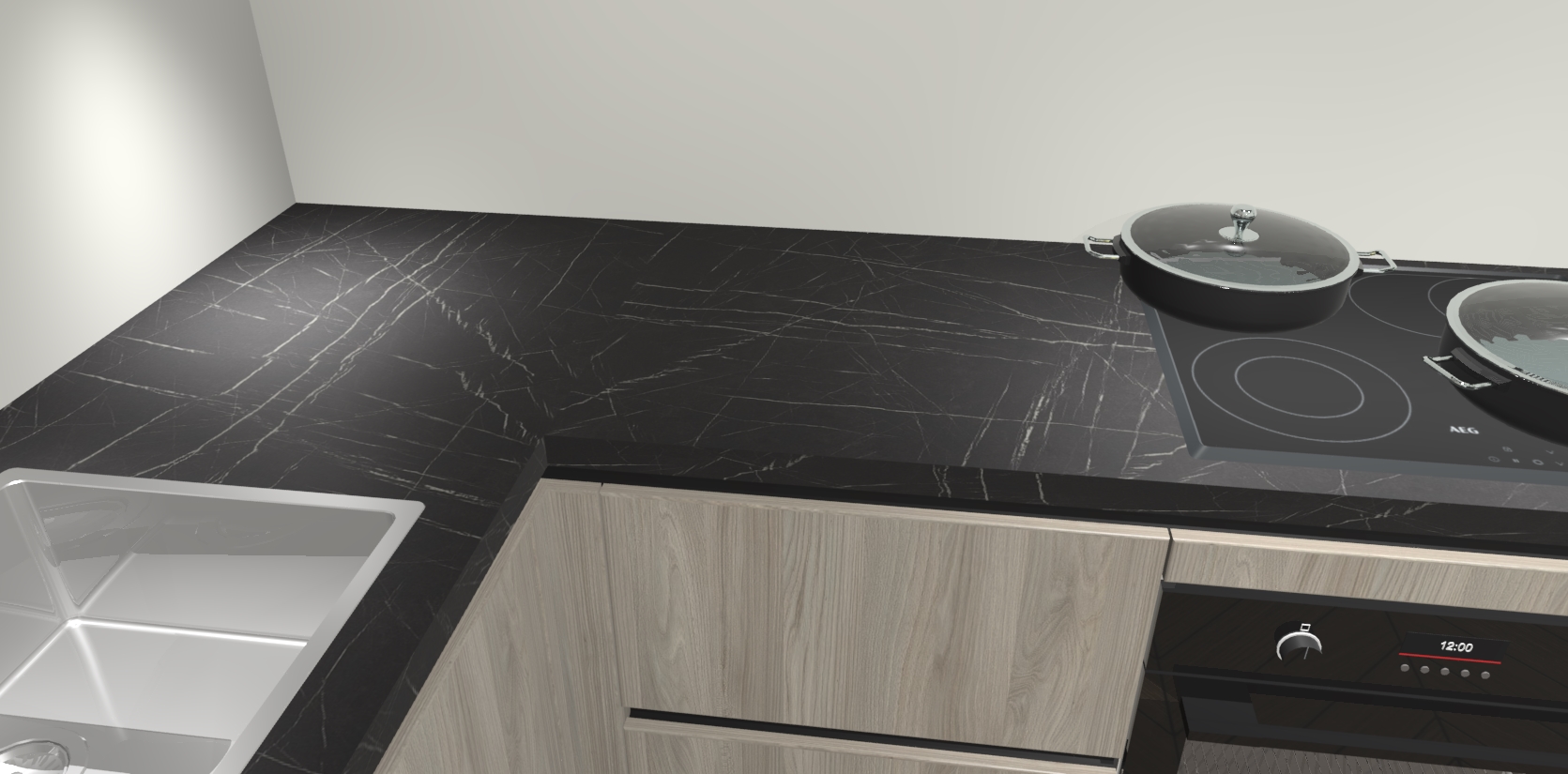 • Bij een hoekwerkblad zijn de hoeken in gevreesd en op maat gemaakt