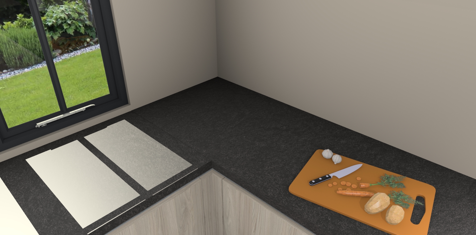 - Bij een hoekwerkblad zijn de hoeken in gevreesd en op maat gemaakt