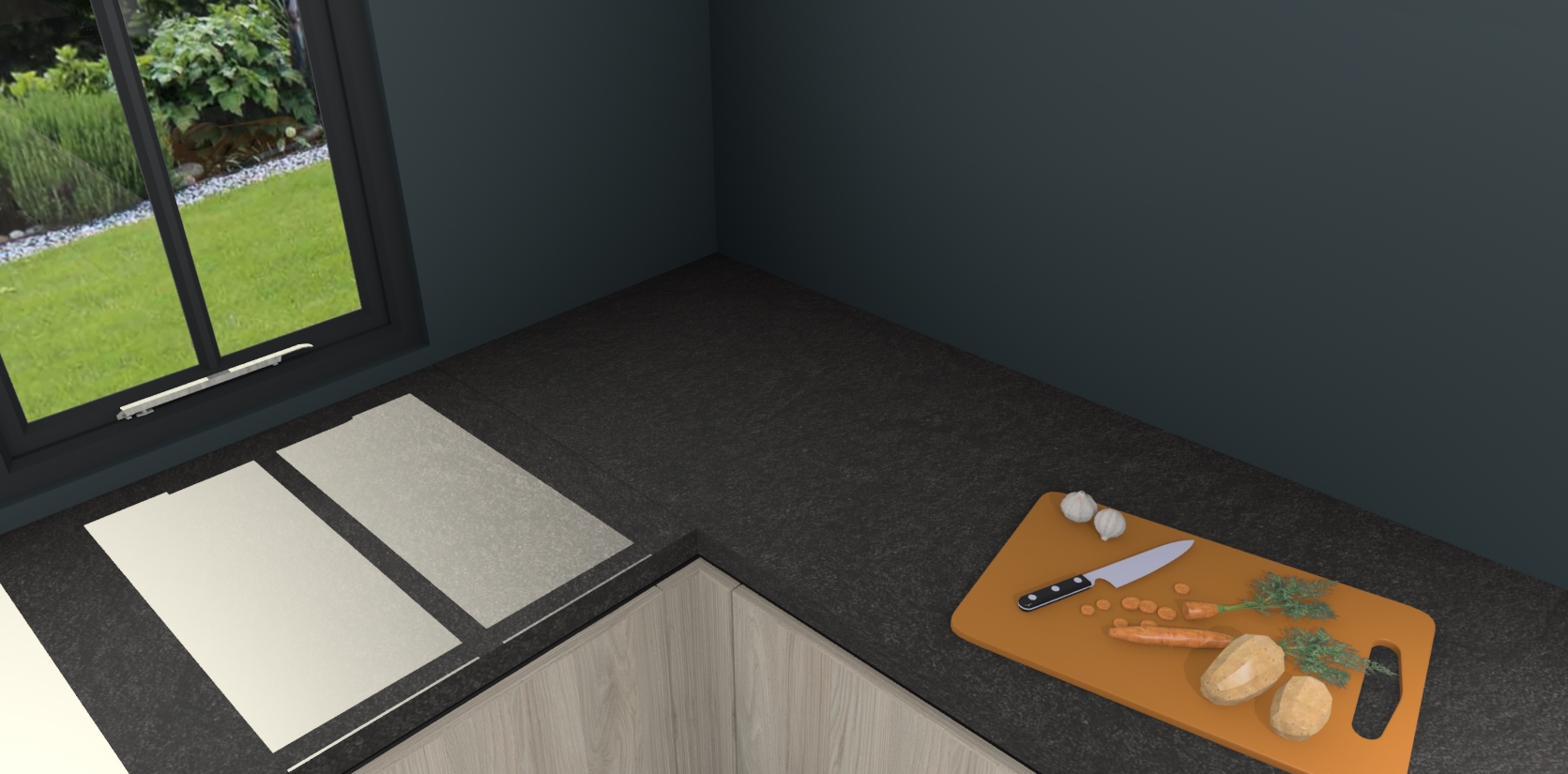 • Bij een hoekwerkblad zijn de hoeken in gevreesd en op maat gemaakt