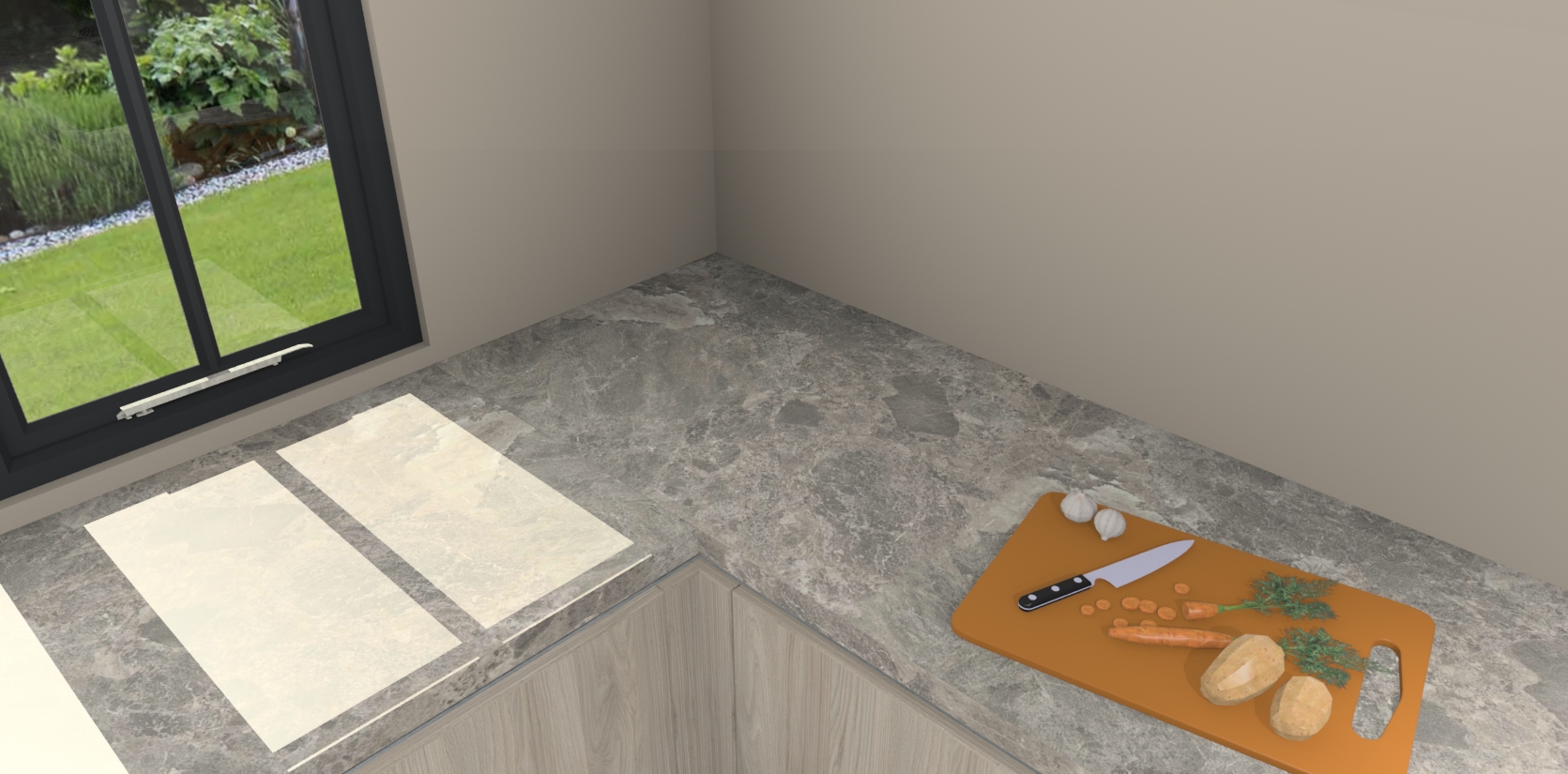 • Bij een hoekwerkblad zijn de hoeken in gevreesd en op maat gemaakt