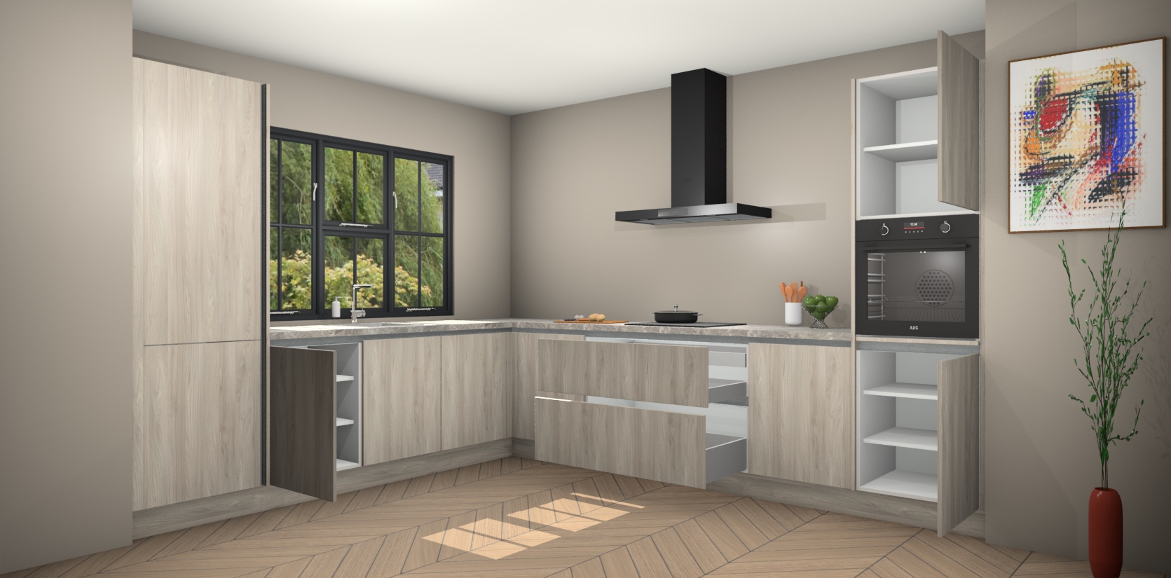In deze box zijn alle kleuren verzameld van de deuren en werkbladen. Vraag de gratis kleurenbox aan en kijk thuis rustig verder!