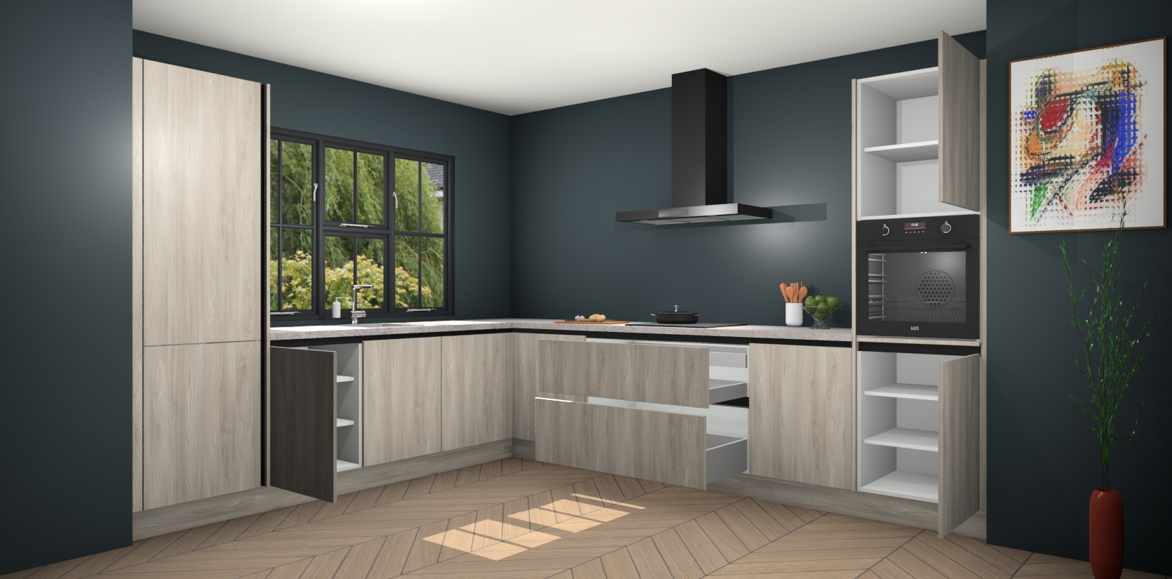In deze box zijn alle kleuren verzameld van de deuren en werkbladen. Vraag de gratis kleurenbox aan en kijk thuis rustig verder!