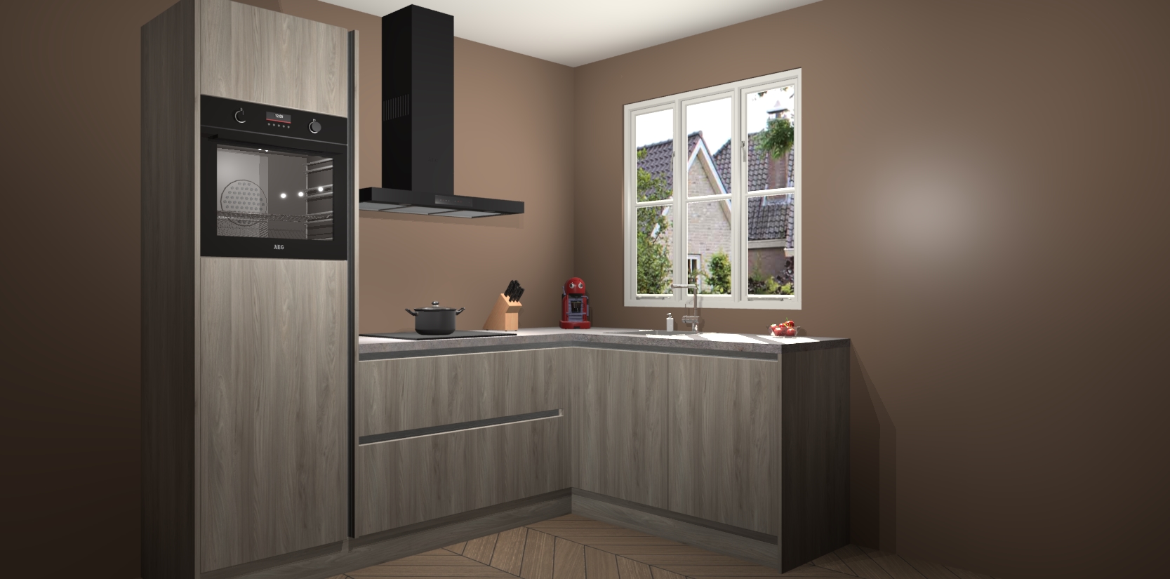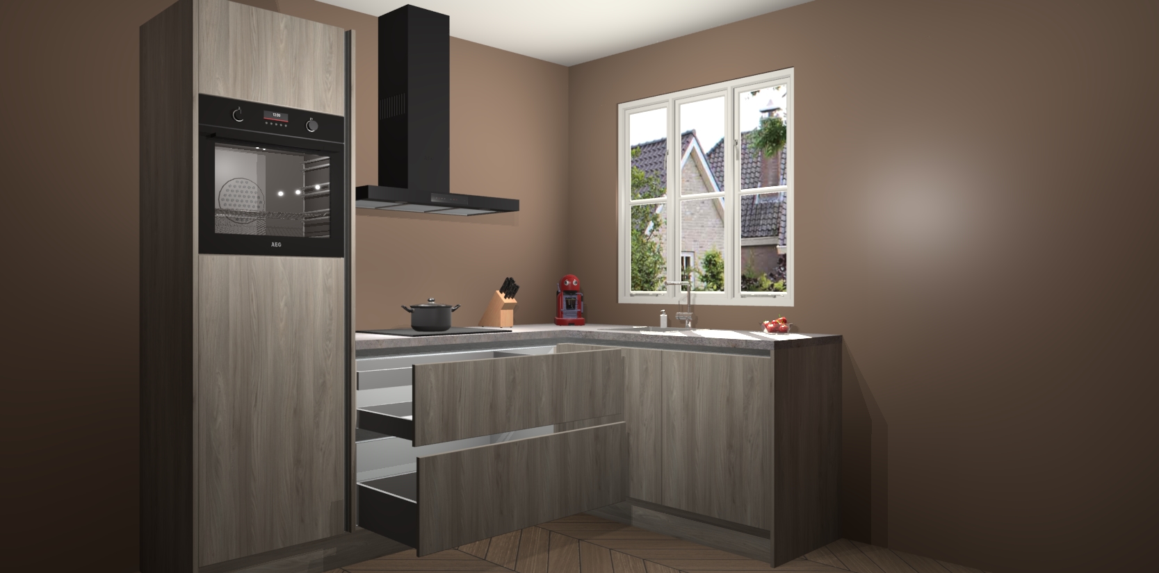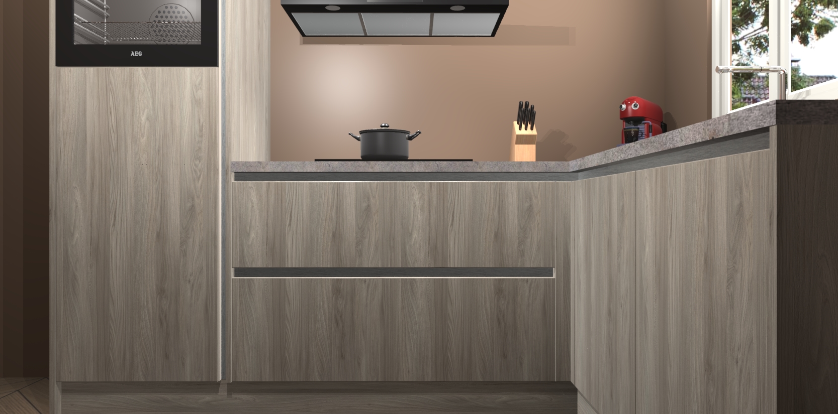 Dit model biedt u voldoende opbergruimte en vijf ingebouwde apparaten: een oven, inductiekookplaat, afzuigkap, vaatwasser en koelkast. Deze apparaten kunnen gemakkelijk worden geüpgrade naar AEG nadat u besteld heeft. De verschillende laden en kastjes bevatten softclose-deuren waardoor ze gezellig dichtvallen met een geruststellend helemaal geruisloos geluid. En dat is nog niet alles! We garanderen ook dat de prijs altijd laag blijft - dus haal nu uw Olm greeploze keuken Victoria terwijl het kan.