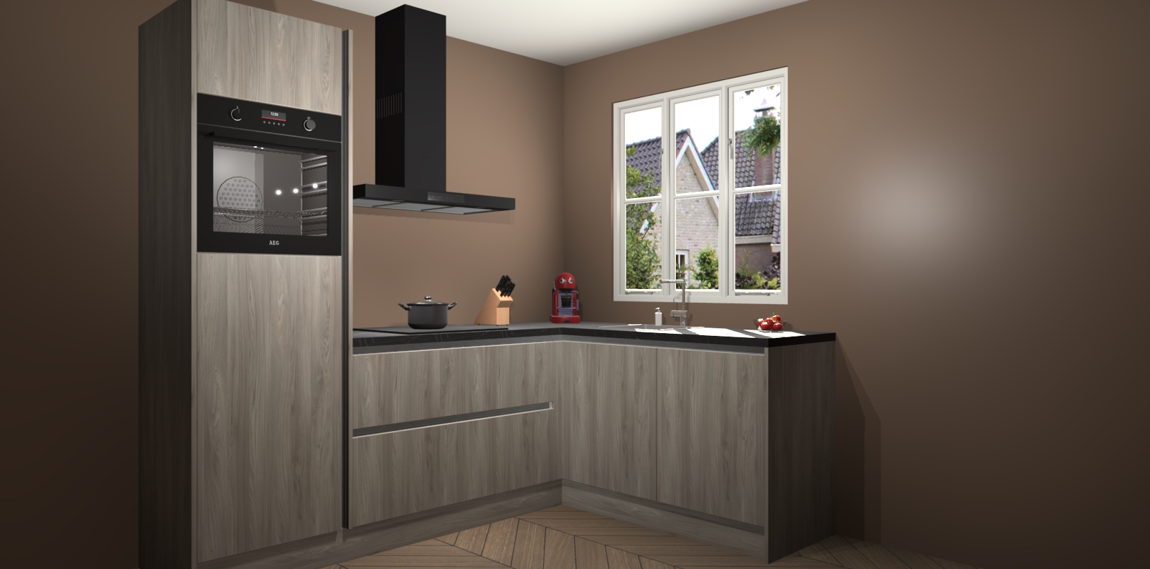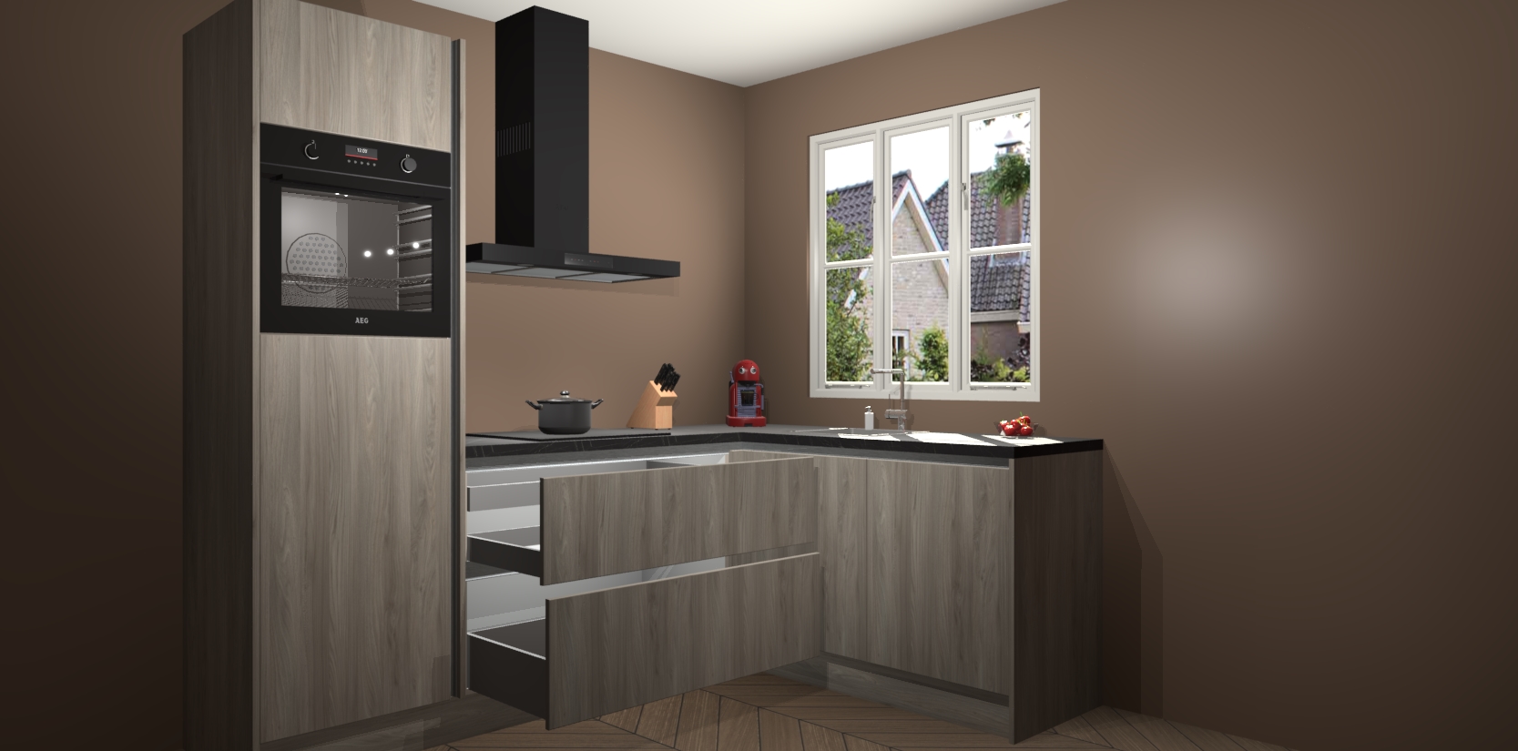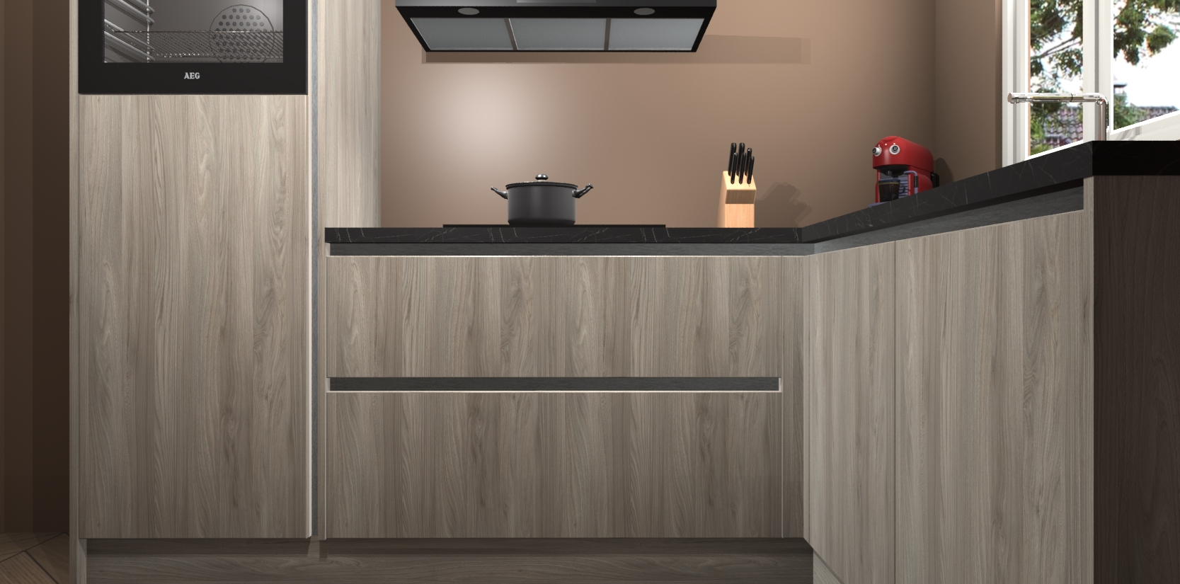 Dit model biedt u voldoende opbergruimte en vijf ingebouwde apparaten: een oven, inductiekookplaat, afzuigkap, vaatwasser en koelkast. Deze apparaten kunnen gemakkelijk worden geüpgrade naar AEG nadat u besteld heeft. De verschillende laden en kastjes bevatten softclose-deuren waardoor ze gezellig dichtvallen met een geruststellend helemaal geruisloos geluid. En dat is nog niet alles! We garanderen ook dat de prijs altijd laag blijft - dus haal nu uw Olm greeploze keuken Victoria terwijl het kan.