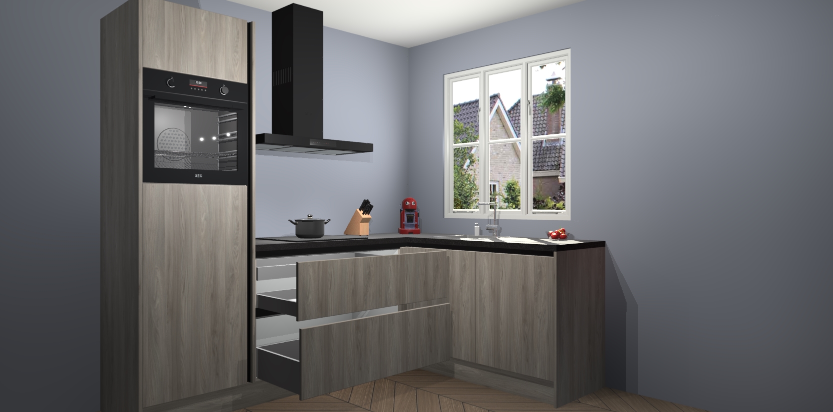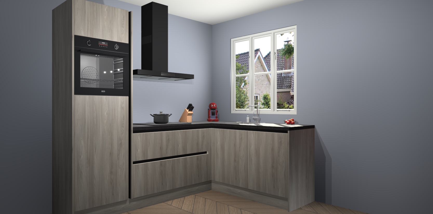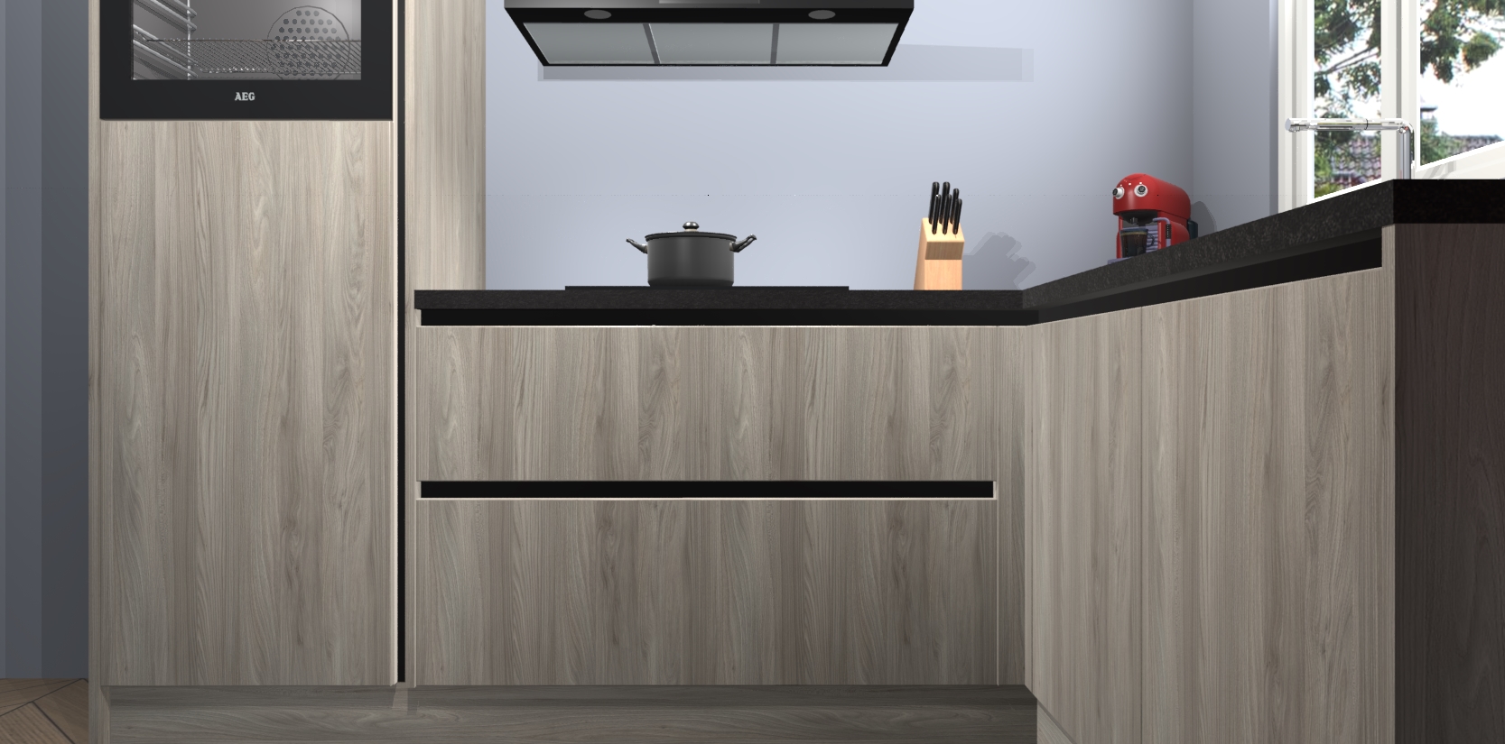 Dit model biedt u voldoende opbergruimte en vijf ingebouwde apparaten: een oven, inductiekookplaat, afzuigkap, vaatwasser en koelkast. Deze apparaten kunnen gemakkelijk worden geüpgrade naar AEG nadat u besteld heeft. De verschillende laden en kastjes bevatten softclose-deuren waardoor ze gezellig dichtvallen met een geruststellend helemaal geruisloos geluid. En dat is nog niet alles! We garanderen ook dat de prijs altijd laag blijft - dus haal nu uw Olm greeploze keuken Victoria terwijl het kan.