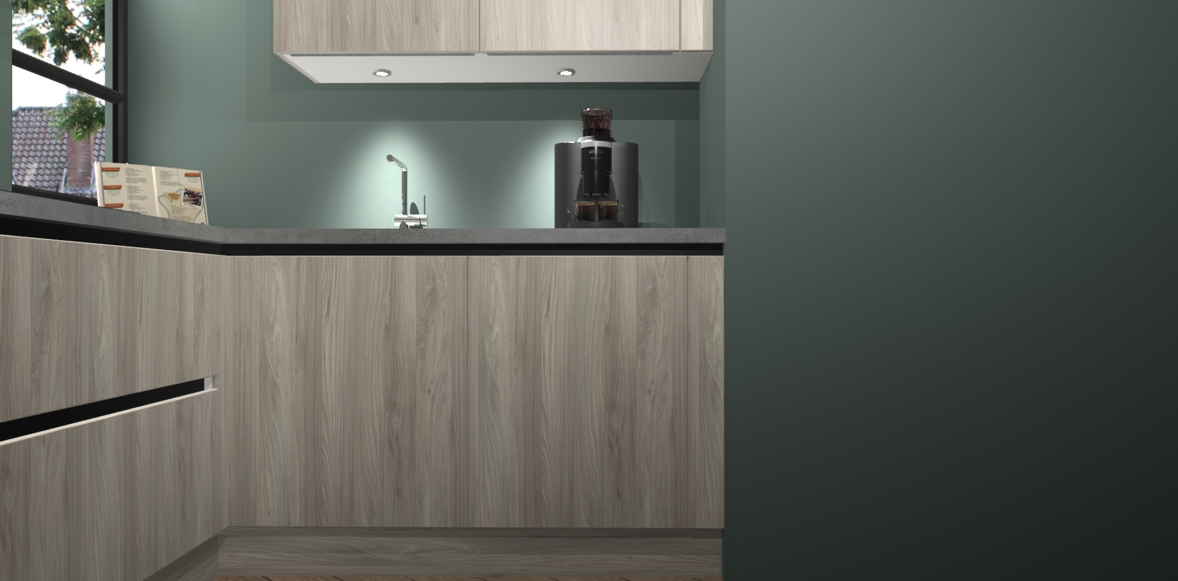 Welkom in uw nieuwe moderne keuken! Laat ons u voorstellen aan de Olm greeploze keuken Vlaanderen. Deze prachtige hoekkeuken straalt exclusiviteit en luxe uit als geen ander. Het strakke design, de tijdloze kleuren en het greeploze model maken van deze keuken een moderne klassieker. En met voldoende opbergruimte heeft deze keuken echt voor ieder wat wils.