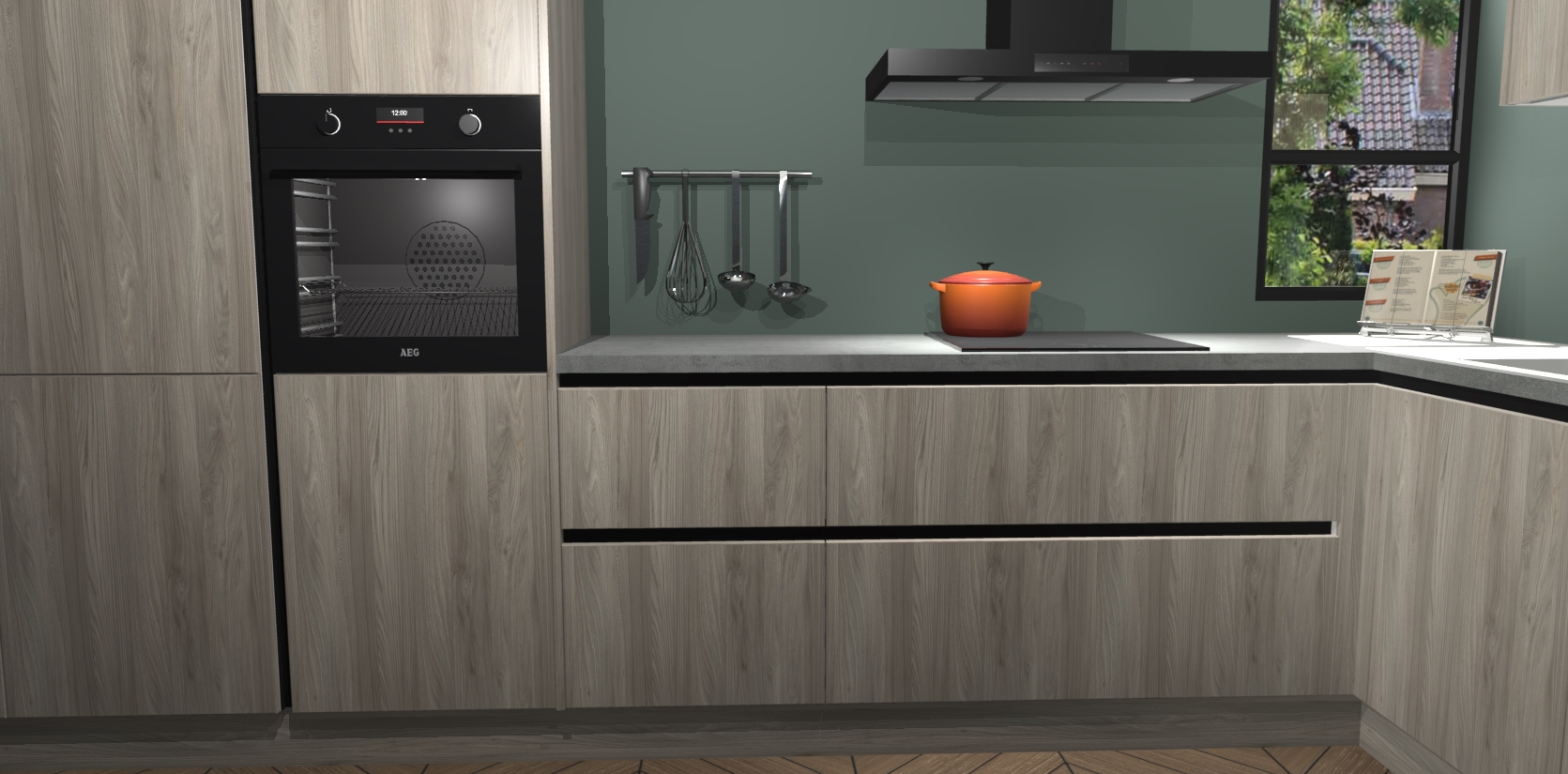 En dat alles voor een vaste lage prijs - u hoeft dus niet in te leveren op kwaliteit of stijl om te krijgen wat u nodig heeft en wilt van uw nieuwe keuken. En met een supersnelle levering van 7 weken kan u in een mum van tijd beginnen koken! En het beste van alles: de kasten worden voorgemonteerd geleverd, dus de installatie is eenvoudig. Bovendien wordt elk onderdeel geleverd met Duitse kwaliteitsgarantie, wat betekent dat deze keuken gemaakt is om jarenlang mee te gaan! En er is nog meer: het pakket bevat 5 inbouwapparaten: een oven, inductiekookplaat, afzuigkap, vaatwasser en koelkast die u na bestelling kunt upgraden naar AEG-modellen. Ook inbegrepen zijn softclose deuren die het gebruik voor zowel kinderen als volwassenen gemakkelijk en veilig maken.