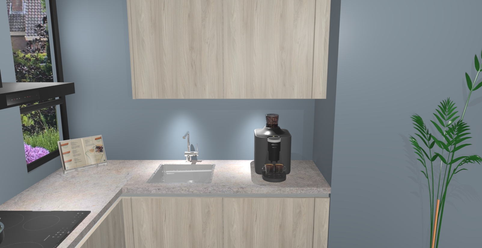 - De spoelbak is nog niet in gevreesd. Dit dient tijdens het werk gedaan te worden