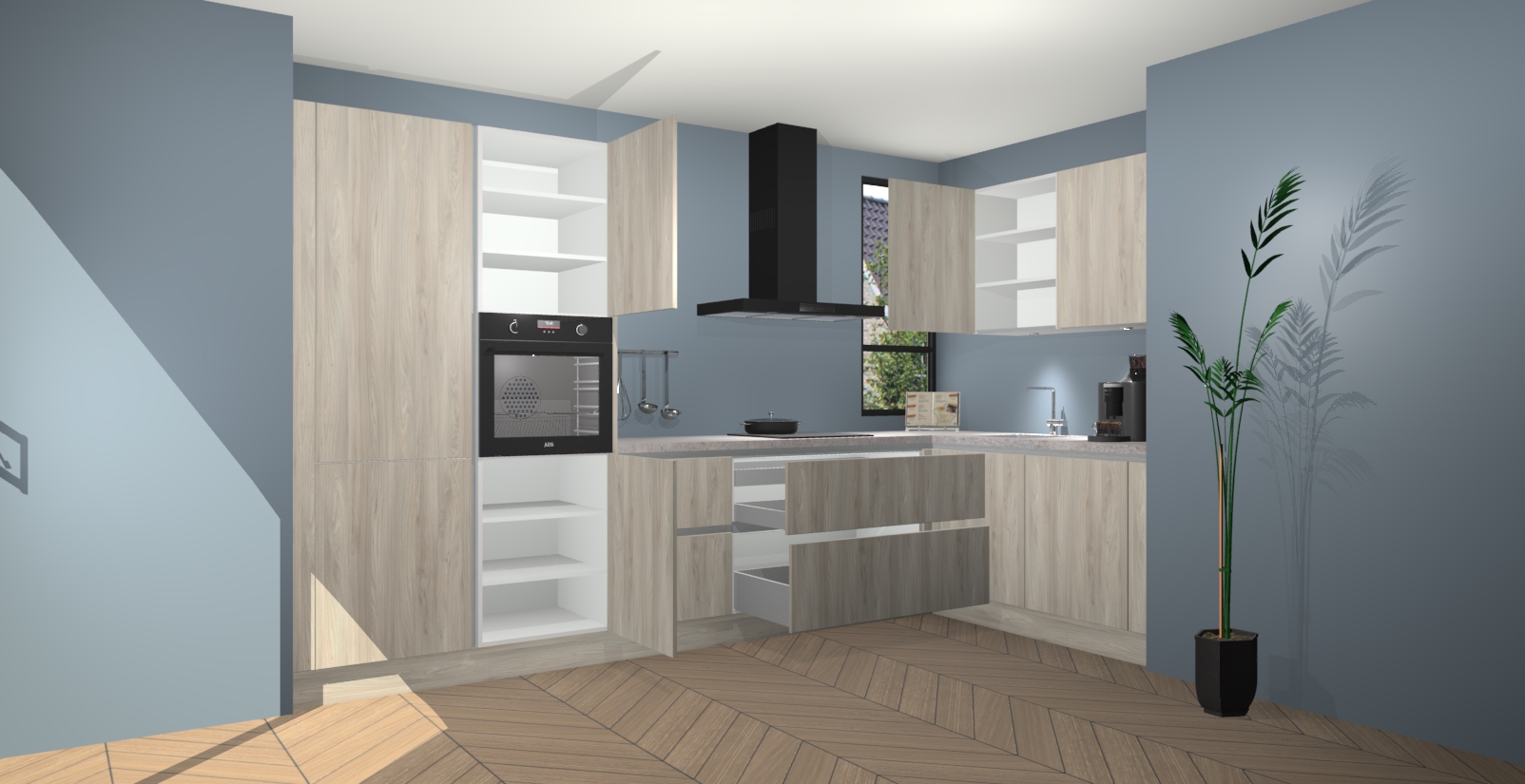 Welkom in uw nieuwe moderne keuken! Laat ons u voorstellen aan de Olm greeploze keuken Vlaanderen . Deze prachtige hoekkeuken straalt exclusiviteit en luxe uit als geen ander. Het strakke design, de tijdloze kleuren en het greeploze model maken van deze keuken een moderne klassieker. En met voldoende opbergruimte heeft deze keuken echt voor ieder wat wils.