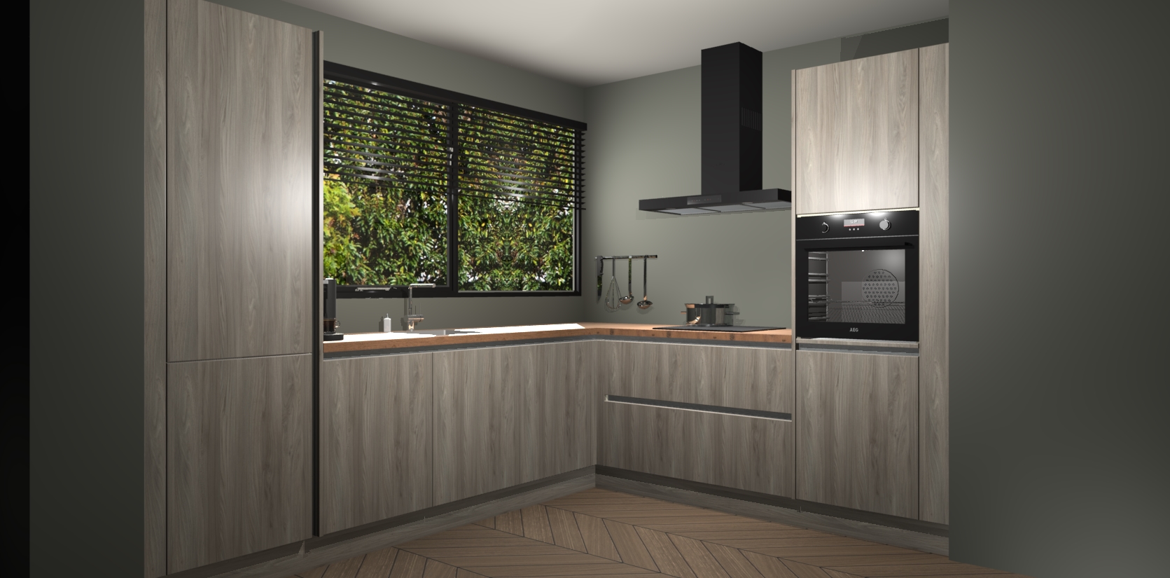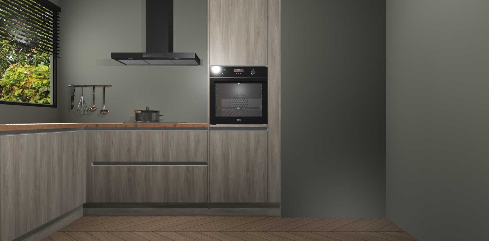 Met een modern, tijdloos design en ruime opslagruimte, zult u zich in no-time thuis voelen in uw nieuwe keuken. Uw leven wordt eenvoudiger met de soft-close deuren die voor het ultieme stille comfort zorgen - geen geluid dat u stoort terwijl u kookt. Ook is de keuken voorzien van 5 ingebouwde apparaten: een oven, inductie kookplaat, afzuigkap, vaatwasser en koelkast. Deze kunnen gemakkelijk na bestelling worden bijgewerkt naar AEG - waardoor uw luxe ervaring compleet is.