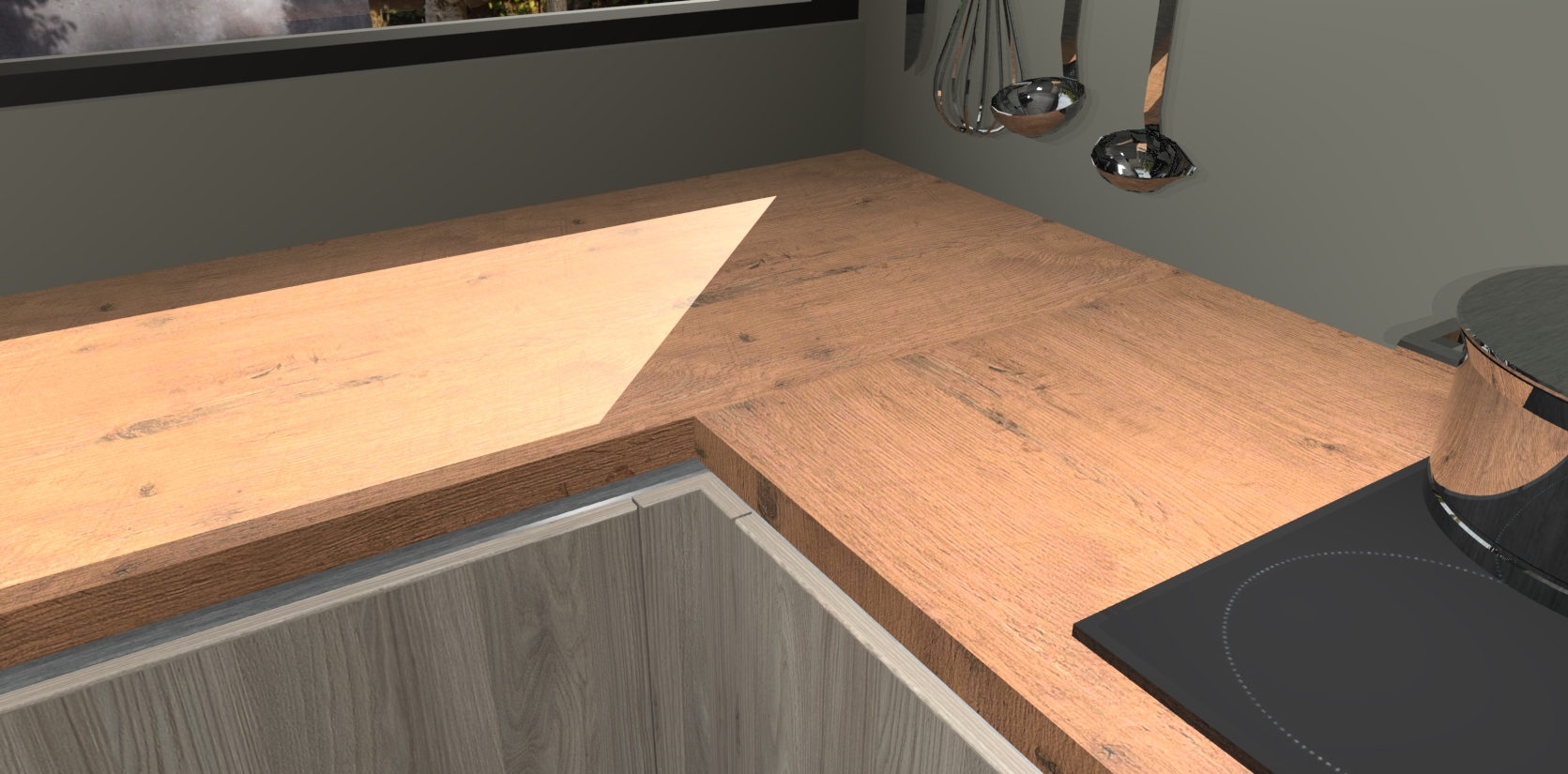 - Bij een hoekwerkblad zijn de hoeken in gevreesd en op maat gemaakt