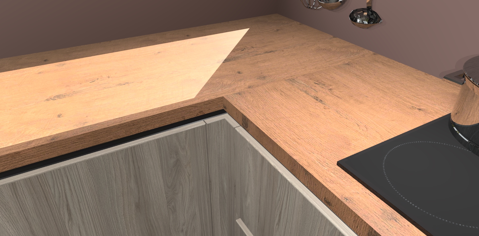 - Bij een hoekwerkblad zijn de hoeken in gevreesd en op maat gemaakt