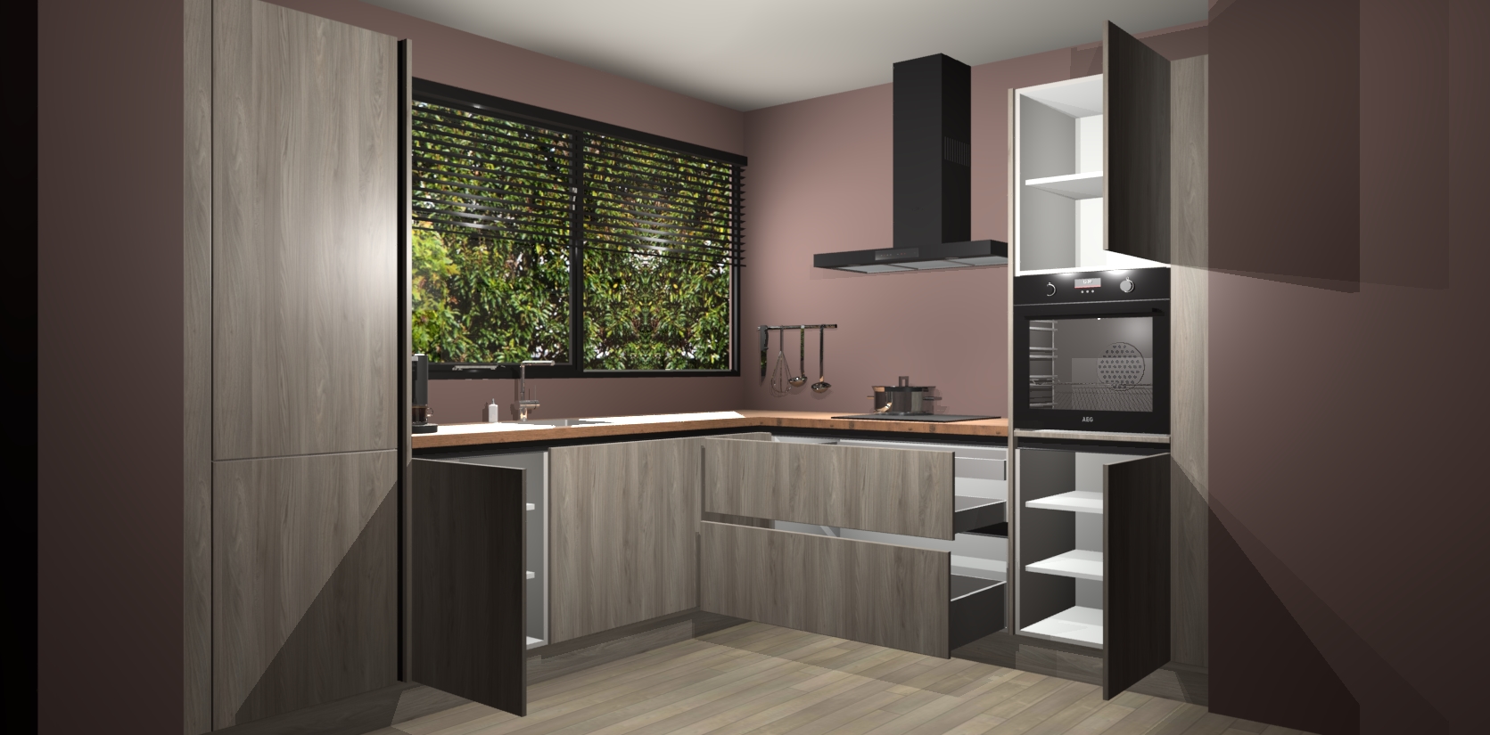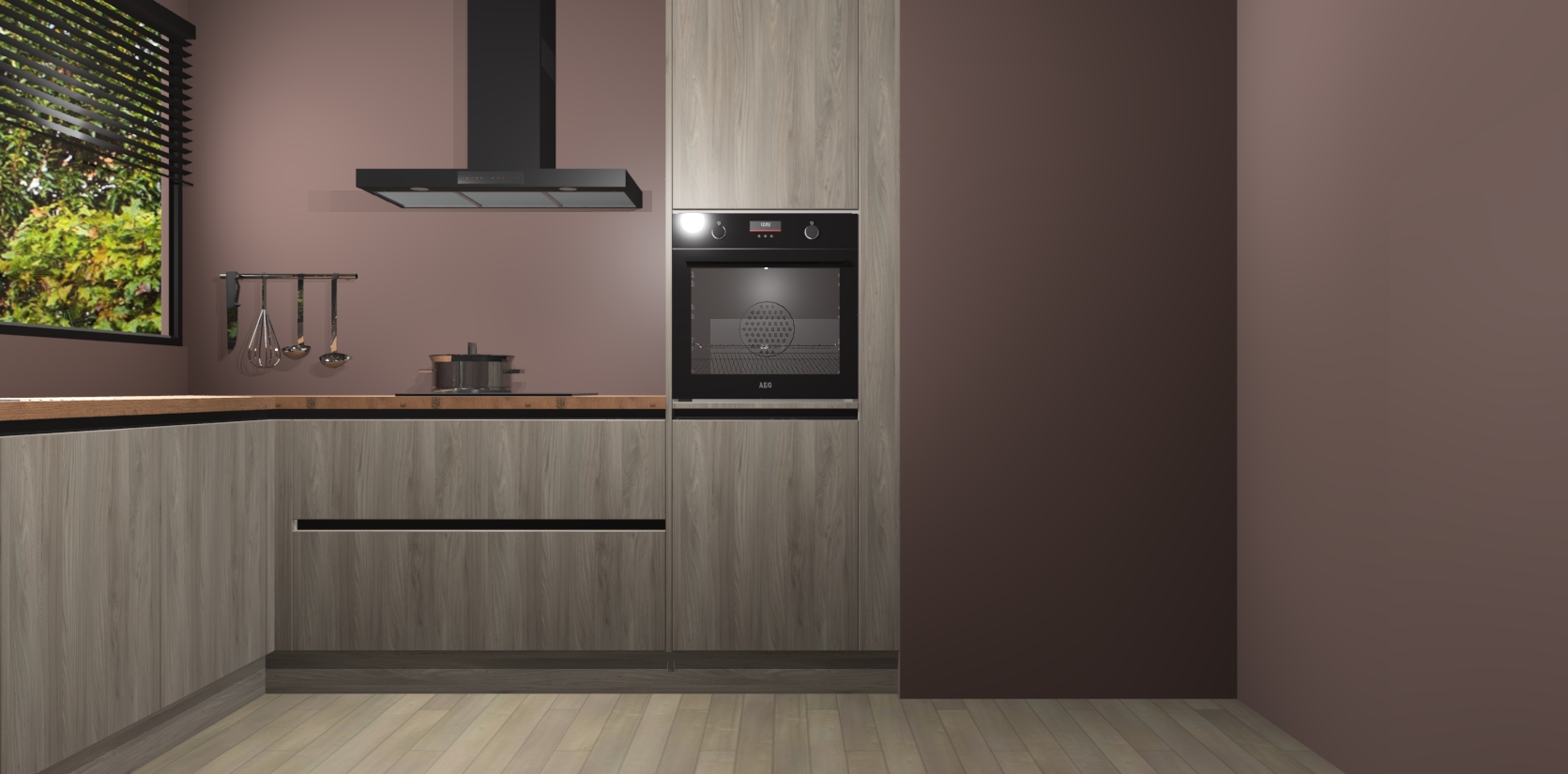 Met een modern, tijdloos design en ruime opslagruimte, zult u zich in no-time thuis voelen in uw nieuwe keuken. Uw leven wordt eenvoudiger met de soft-close deuren die voor het ultieme stille comfort zorgen - geen geluid dat u stoort terwijl u kookt. Ook is de keuken voorzien van 5 ingebouwde apparaten: een oven, inductie kookplaat, afzuigkap, vaatwasser en koelkast. Deze kunnen gemakkelijk na bestelling worden bijgewerkt naar AEG - waardoor uw luxe ervaring compleet is.