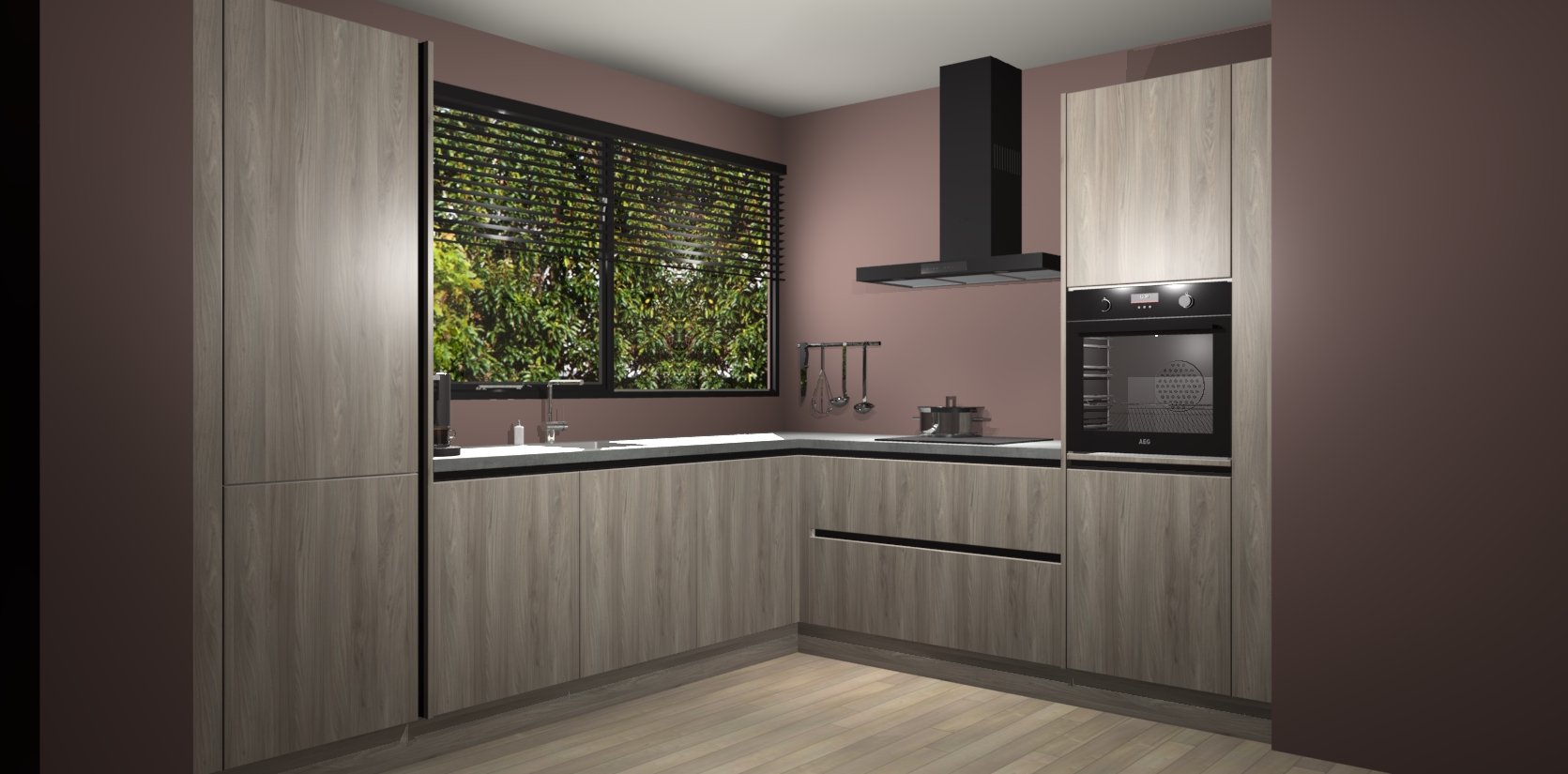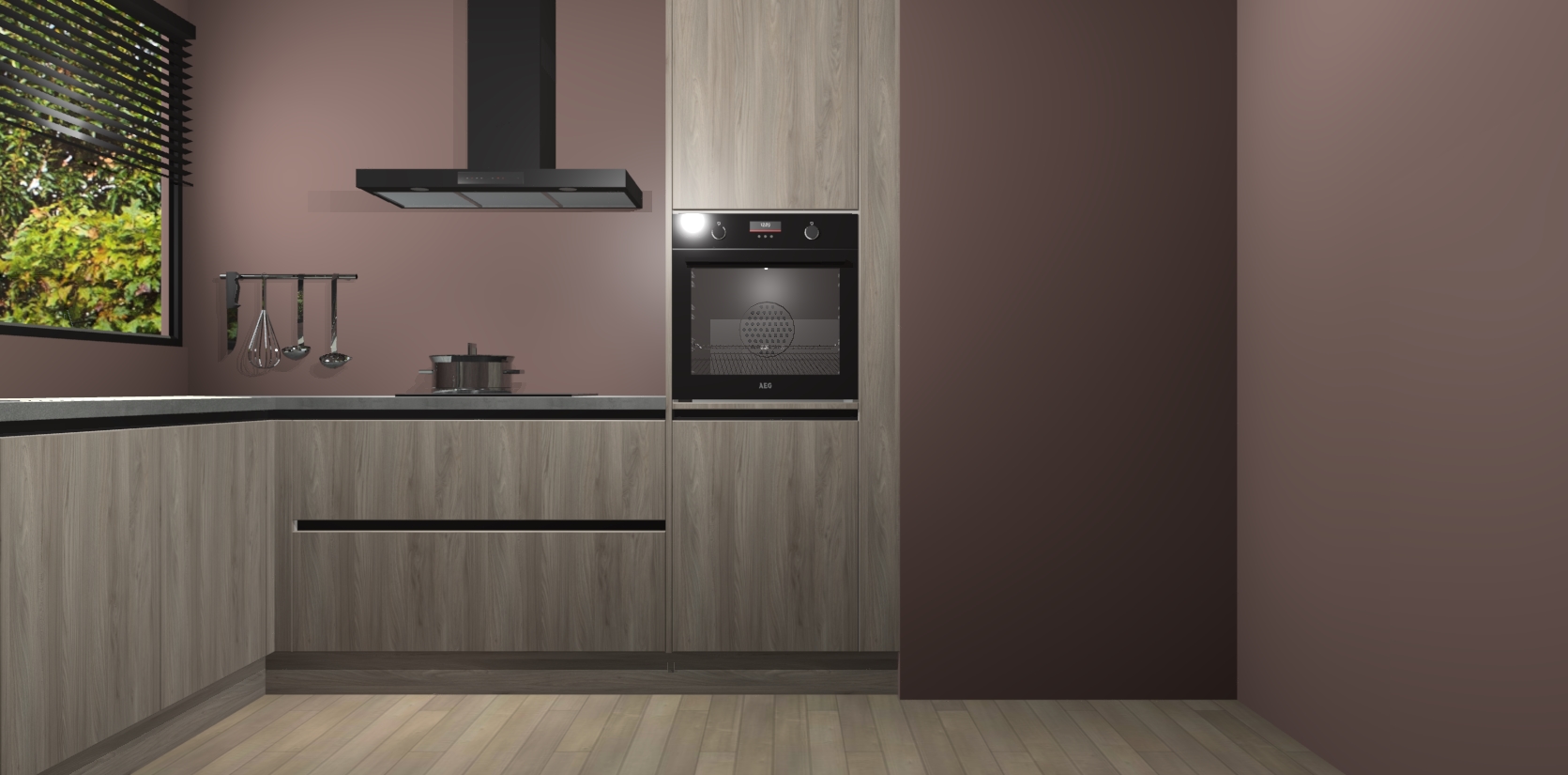Met een modern, tijdloos design en ruime opslagruimte, zult u zich in no-time thuis voelen in uw nieuwe keuken. Uw leven wordt eenvoudiger met de soft-close deuren die voor het ultieme stille comfort zorgen - geen geluid dat u stoort terwijl u kookt. Ook is de keuken voorzien van 5 ingebouwde apparaten: een oven, inductie kookplaat, afzuigkap, vaatwasser en koelkast. Deze kunnen gemakkelijk na bestelling worden bijgewerkt naar AEG - waardoor uw luxe ervaring compleet is.