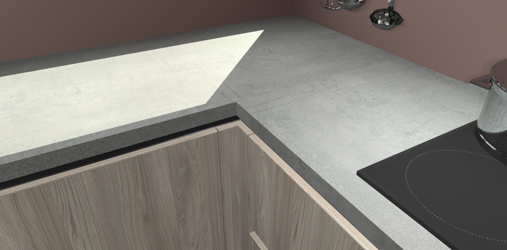 - Bij een hoekwerkblad zijn de hoeken in gevreesd en op maat gemaakt